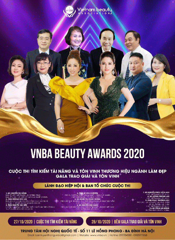 VNBA – Beauty Awards 2020 là cuộc thi tìm kiếm, phát hiện, tôn vinh những gương mặt tài năng của ngành làm đẹp Việt Nam. Đây cũng là cuộc thi mang tính chính quy duy nhất của ngành làm đẹp ở Việt Nam, do Hội Đào tạo và Phát triển nghề làm đẹp Việt Nam (VNBA), trực thuộc Hiệp hội Giáo dục nghề nghiệp và Nghề Công tác xã hội (thuộc Bộ Lao động, Thương binh và Xã hội) tổ chức. Cuộc thi là sự kiện vô cùng quan trọng nhằm công nhận và vinh danh các cá nhân, tập thể với những đóng góp có ý nghĩa to lớn cho ngành làm đẹp; đưa ngành làm đẹp Việt Nam lên một tầm cao mới, sánh ngang tầm cùng các nước trong khu vực và quốc tế.