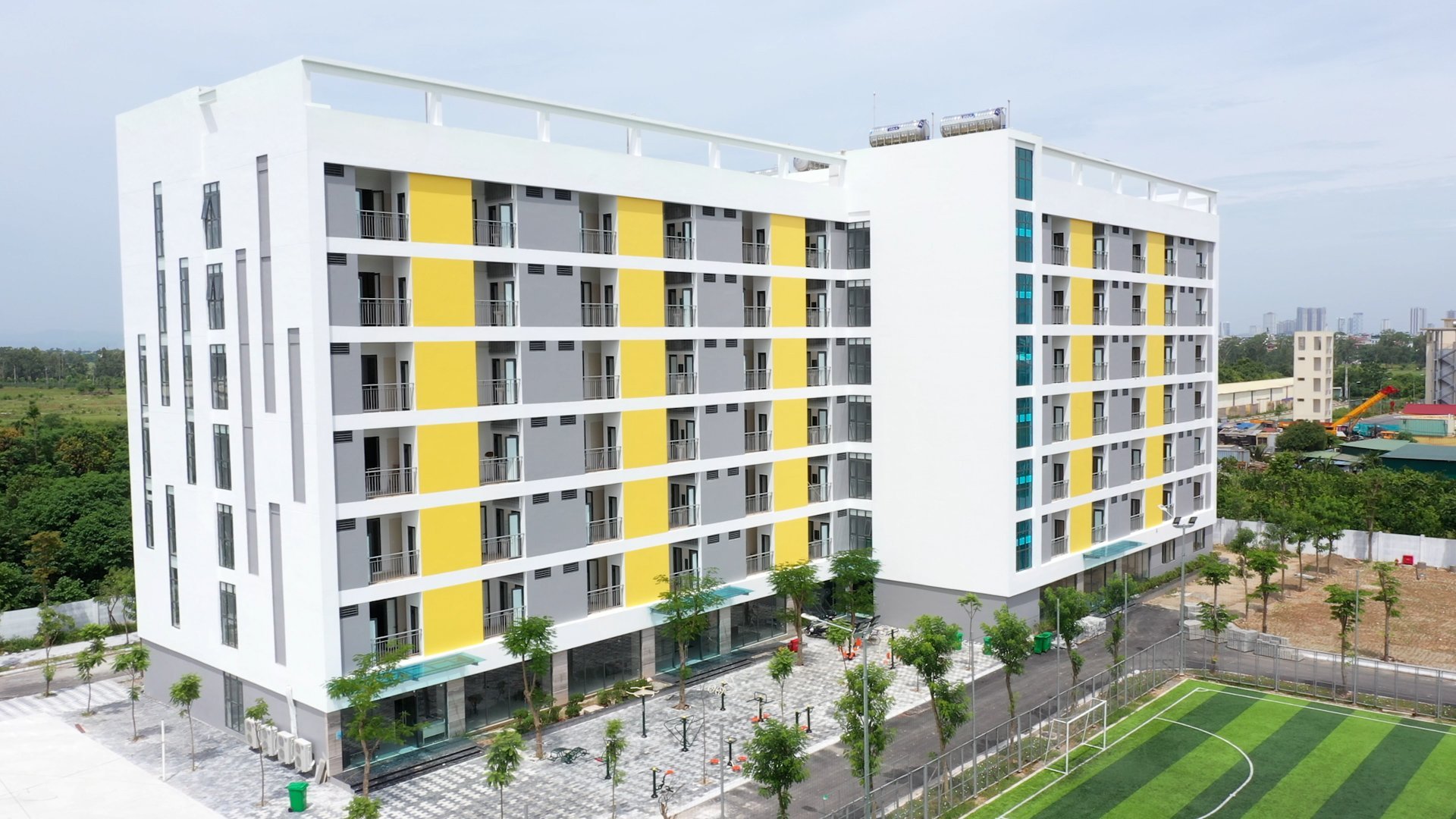 Tổ hợp ký túc xá Cao đẳng Công nghệ Bách khoa Hà Nội còn bao gồm sân chơi thể thao như: bóng đá, bóng chuyền, bóng rổ, phòng tập gym… để sinh viên thỏa sức rèn luyện thân thể, đảm bảo sức khỏe tốt cho việc học tập tại trường. Bên cạnh đó để an ninh chỗ ở của sinh viên được đảm bảo, nhà trường còn lắp đặt hệ thống camera ngay từ cổng trường, ban quản lý ký túc tận tâm trách nhiệm khiến sinh viên vô cùng yên tâm, hài lòng.