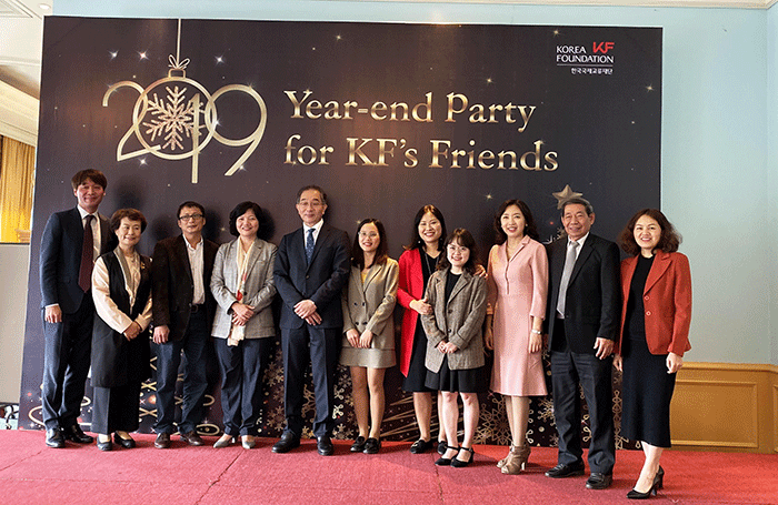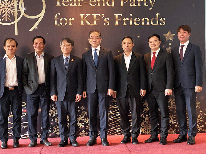 Ngài Geun Lee – Chủ tịch KF (thứ 5 từ trái sang) chụp ảnh lưu niệm cùng đại diện các đơn vị tại Chương trình Year – end party for KF’s Friends