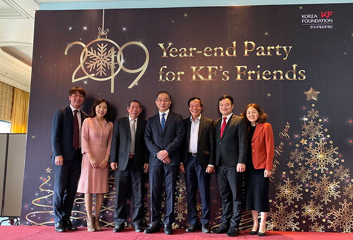 Ngài Geun Lee – Chủ tịch KF (thứ 5 từ trái sang) chụp ảnh lưu niệm cùng đại diện các đơn vị tại Chương trình Year – end party for KF’s Friends