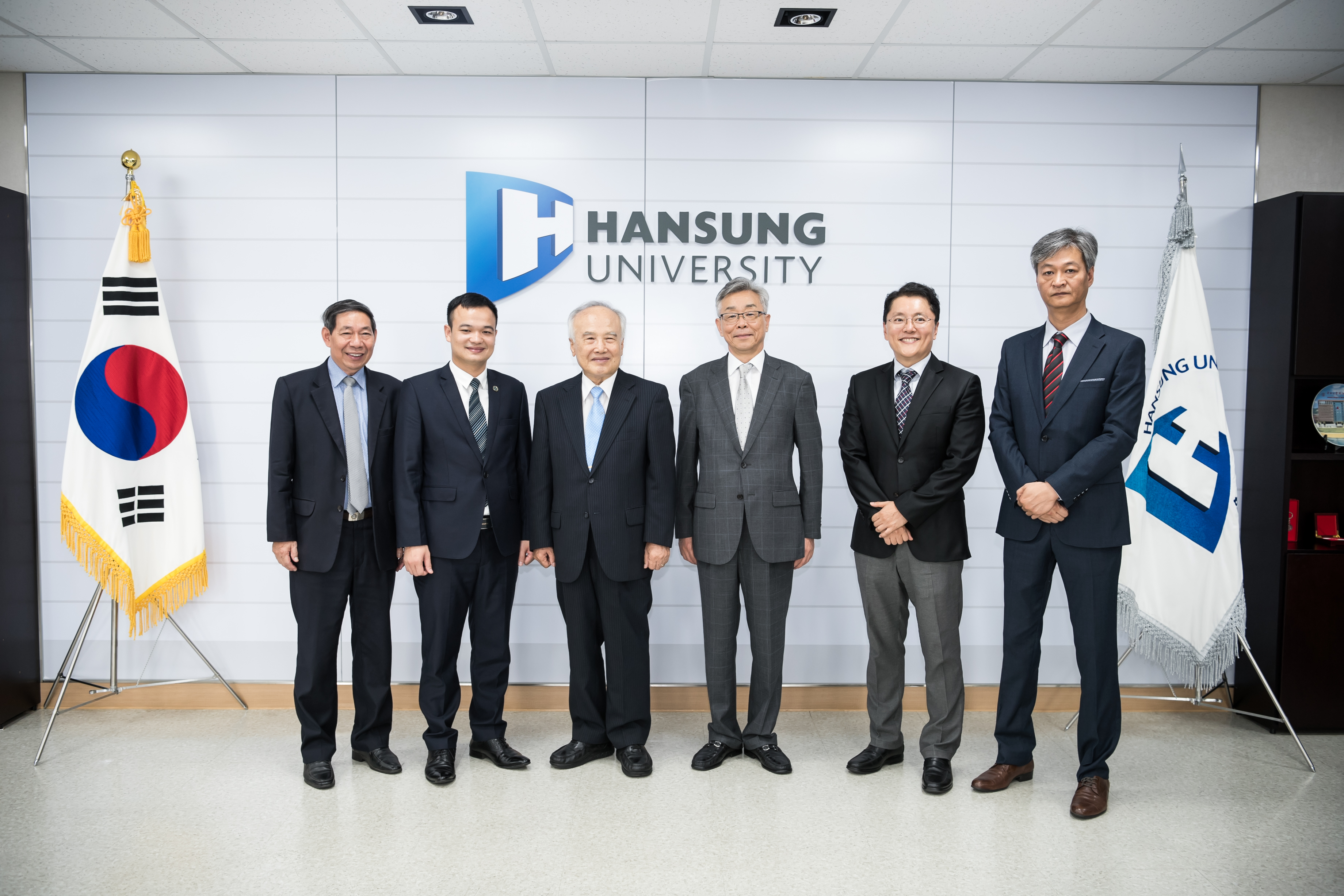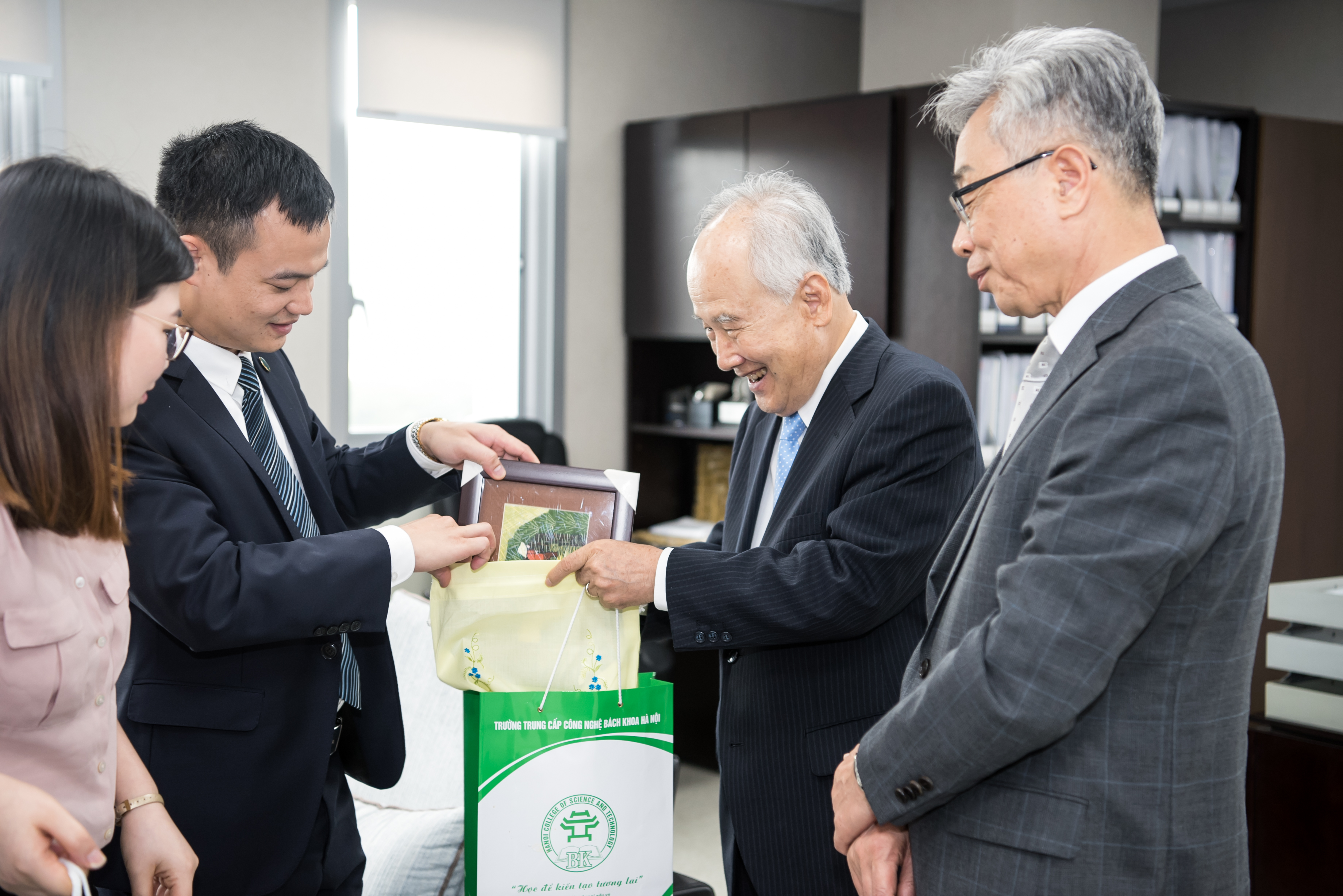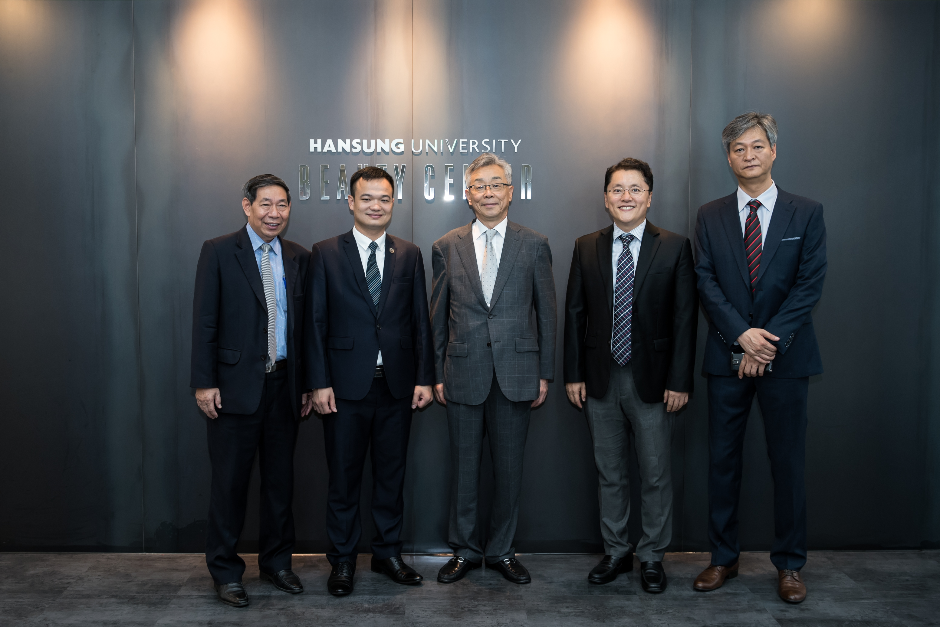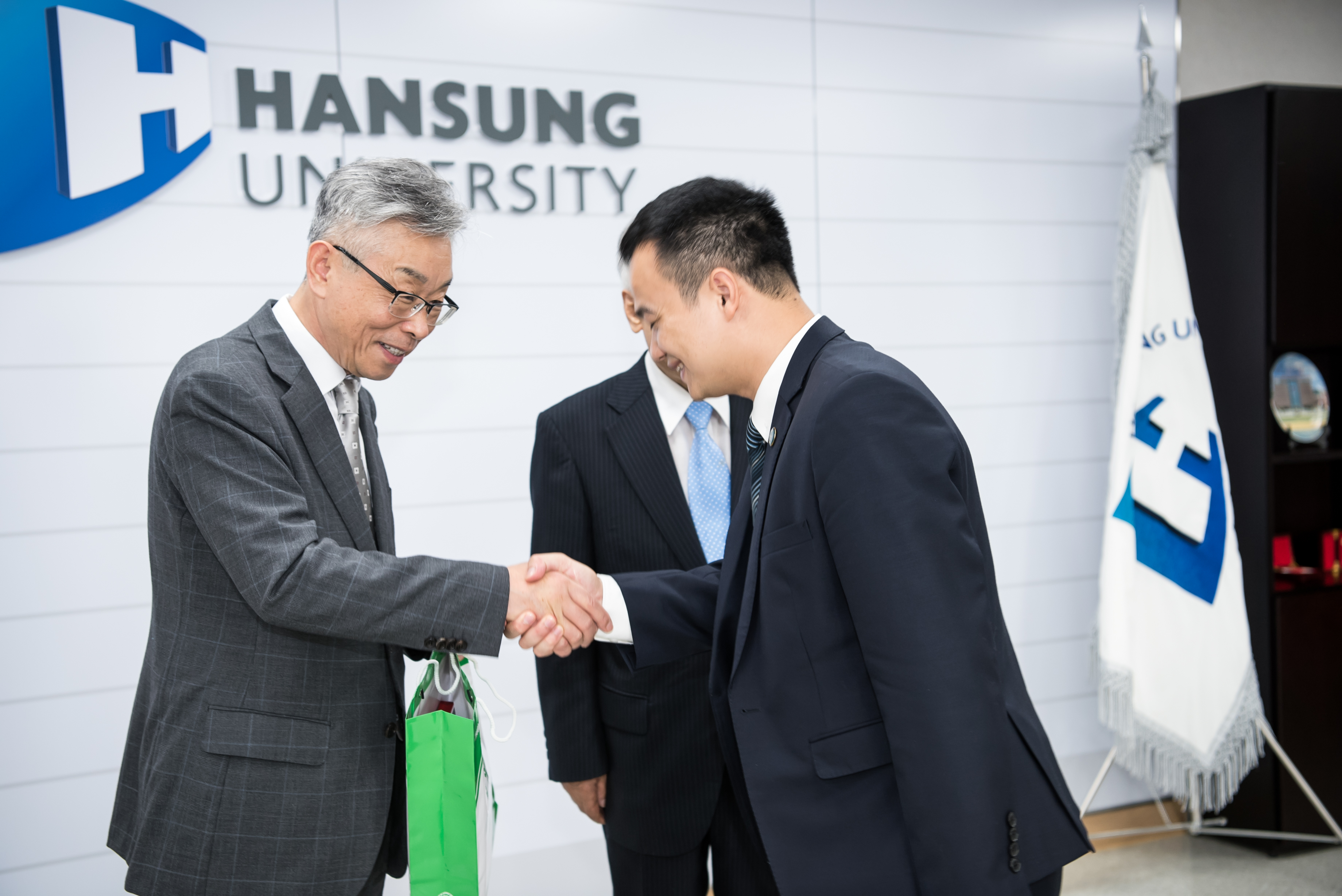 Đại diện Ban lãnh đạo Trường Đại học HANSUNG Hàn Quốc tiếp đón Lãnh đạo Trường Trung cấp Công nghệ Bách khoa Hà Nội có GS. Chong Hoon Lee – Hiệu trưởng trường Đại học HANSUNG, GS. Sang Hann Lee – Chủ tịch Hội đồng Giáo dục nhà trường, GS. Chulwoo Park – Trưởng phòng Hợp tác quốc tế, GS Seung Cheon Kim – Cán bộ Phòng Hợp tác quốc tế.