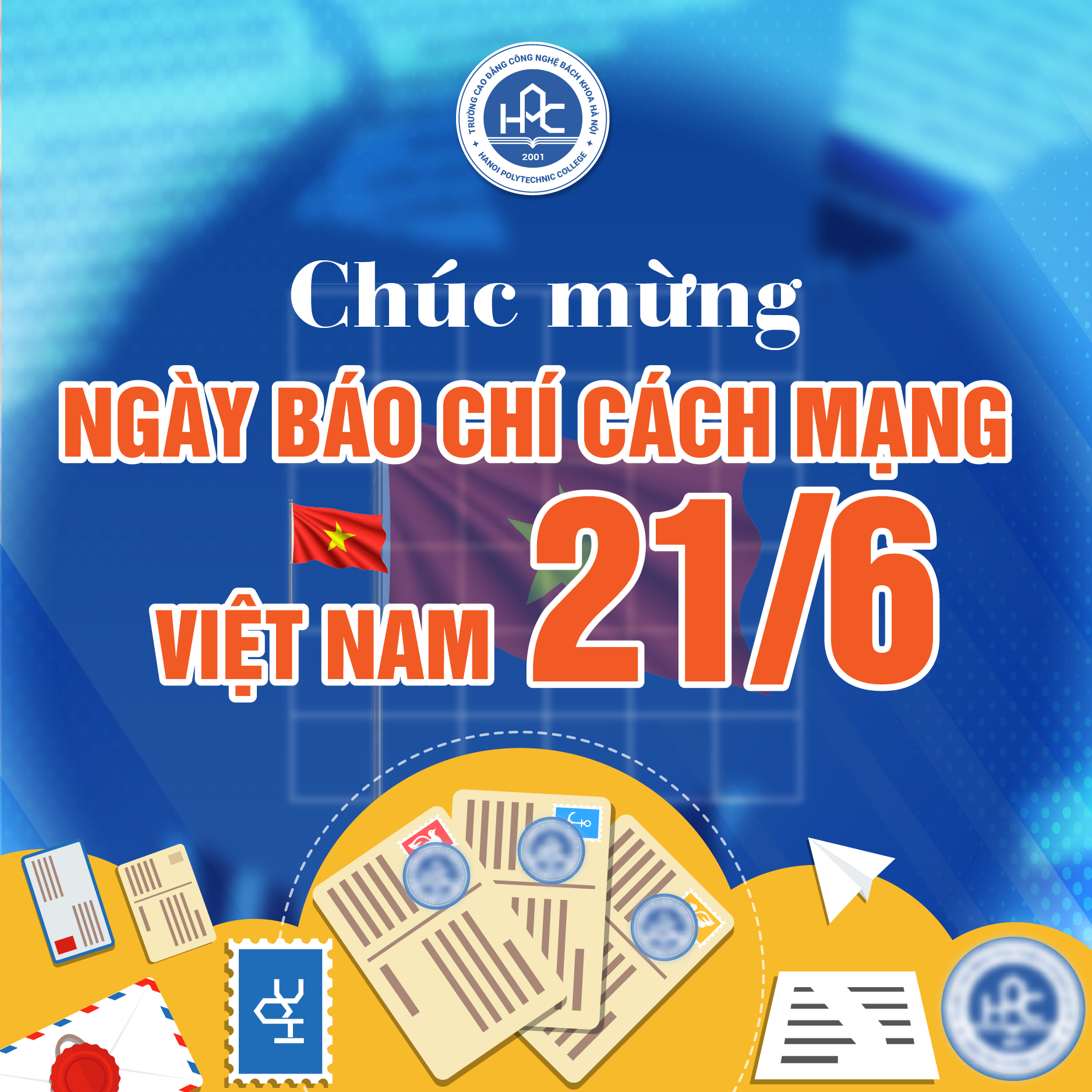Nhân dịp Kỷ niệm 99 năm Ngày báo chí cách mạng Việt Nam (21/6/1925 – 21/6/2024), Trường Cao đẳng Công nghệ Bách khoa Hà Nội xin gửi lời chúc mừng và tri ân chân thành nhất tới các Cơ quan thông tấn báo chí, các anh chị Nhà báo/Phóng viên/BTV… đang công tác trong lĩnh vực truyền thông, báo chí.