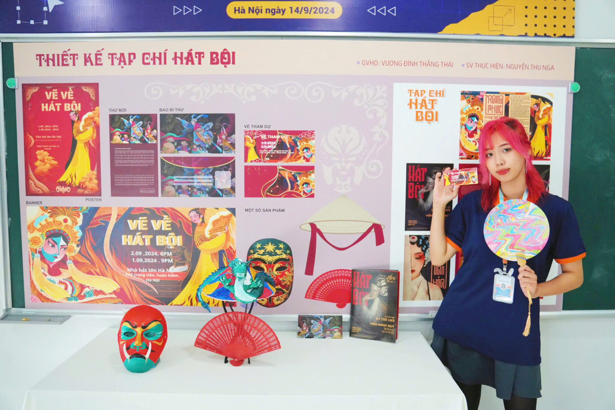 Sinh viên Nguyễn Thu Nga, lớp 1621TKH01, tác giả của dự án “Thiết kế Tạp chí Hát Bội”, không giấu nổi niềm vui khi được Hội đồng khen ngợi: “Em rất vui vì sản phẩm của mình được đánh giá cao. Em thấy những công sức của mình dành cho sản phẩm đã được ghi nhận và em có thêm nhiều động lực để tiếp tục theo nghề thiết kế đồ hoạ”.