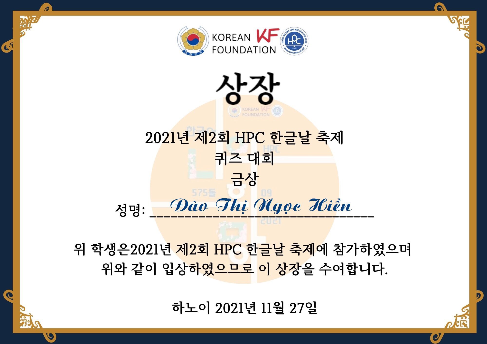 Nhận thấy bản thân đam mê yêu thích học tiếng Hàn nên Hiền quyết định bỏ Đại học Hải Phòng về học Khoa Ngôn ngữ và Văn hóa Hàn Quốc HPC