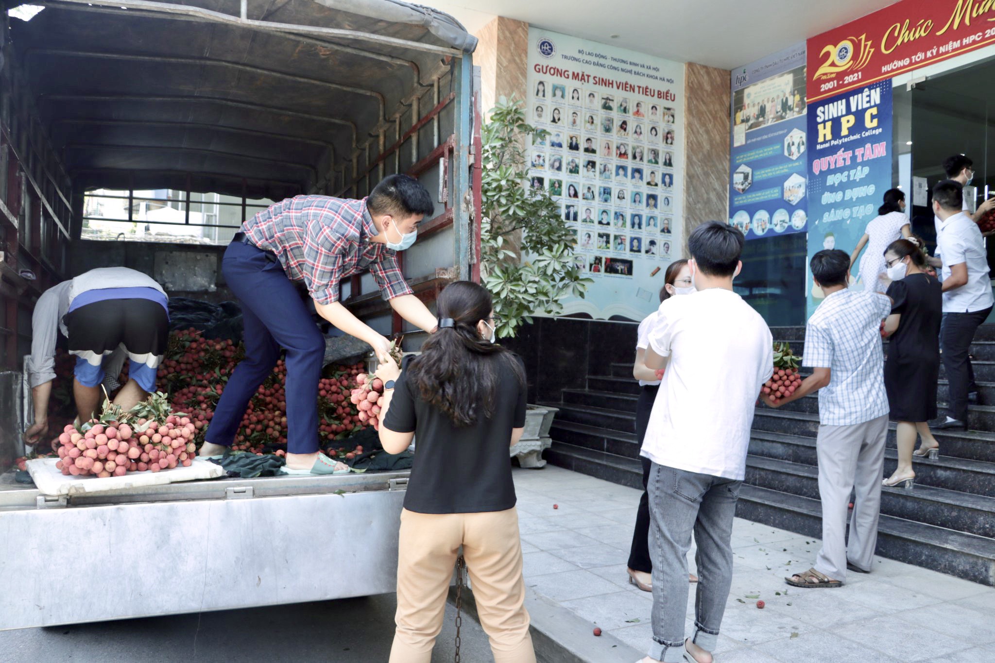 Sáng ngày 17/06/2021, hưởng ứng lời kêu gọi của Ban chấp hành Đoàn Thanh niên Trường Cao đẳng Công nghệ Bách khoa Hà Nội (HPC), toàn thể Cán bộ – Giảng viên đã đón chuyến xe Hỗ trợ tiêu thụ vải thiều Bắc Giang.