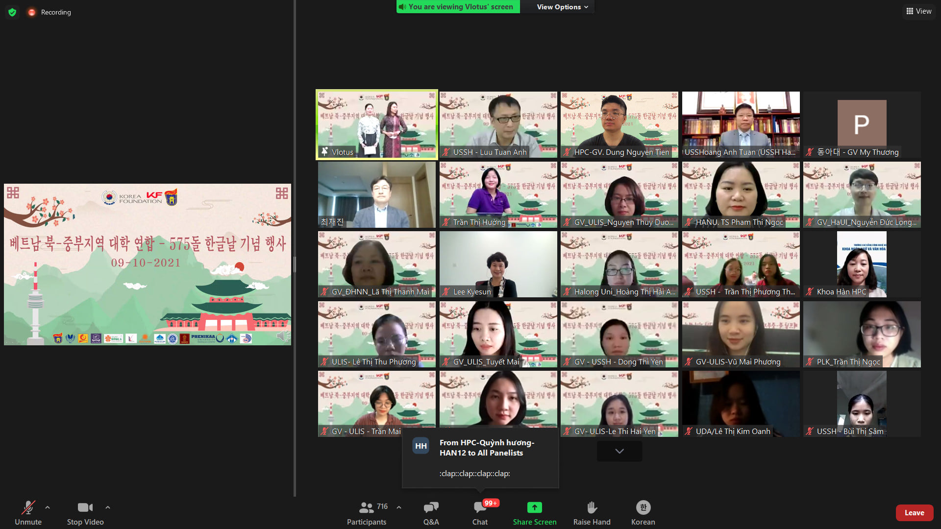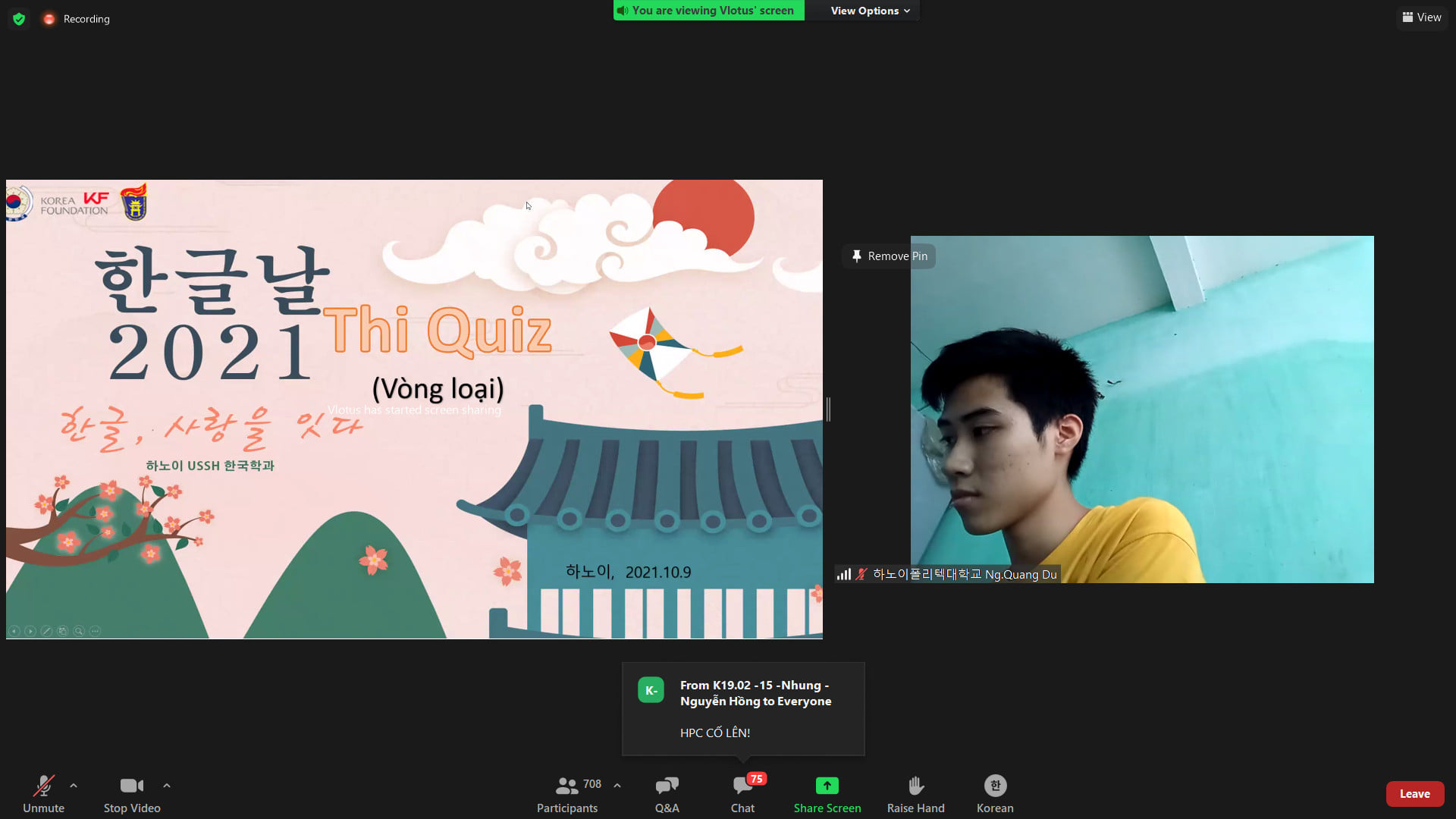 Sáng ngày 9/10/2021 đội tuyển sinh viên HPC đã tham gia thi trong chương trình Kỷ niệm ngày ra đời chữ Hangeul lần thứ 575 được tổ chức tại Trường KHXH&NV Hà Nội. Đây là sự kiện lớn nhất của ngành tiếng Hàn Quốc tại Việt Nam do Đại sứ quán Hàn Quốc và Quỹ Giao lưu quốc tế Hàn Quốc KF bảo trợ.