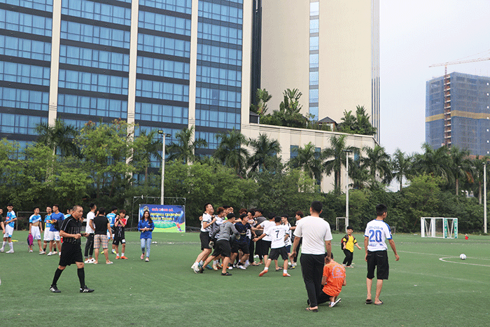 Đặc biệt, cổ động viên còn được thưởng thức trận giao hữu đặc sắc giữa đội vô địch nữ và đội cán bộ, giảng viên HPC.