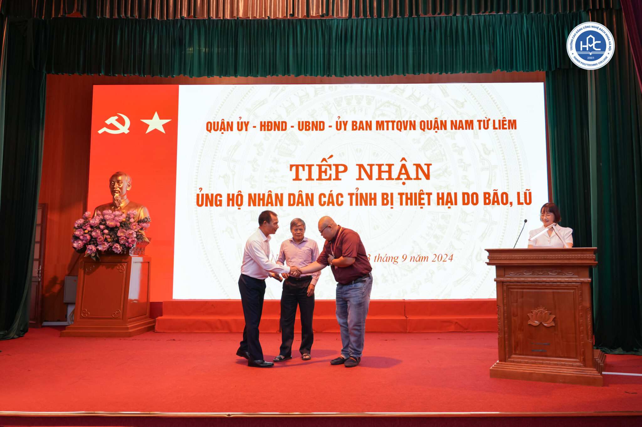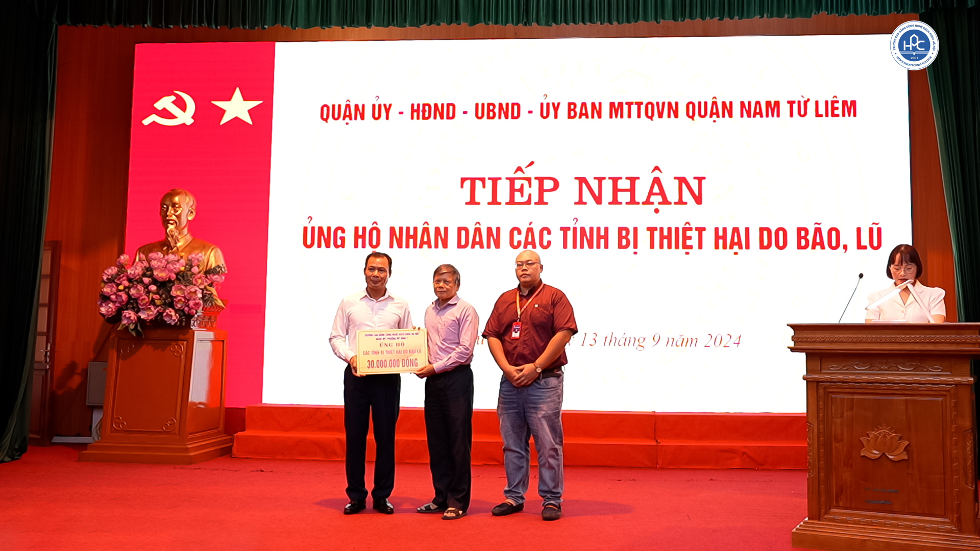 Chiều 13/9, tại Hội nghị tiếp nhận, ủng hộ nhân dân các tỉnh bị thiệt hại do bão lũ, được Ủy ban Mặt trận Tổ quốc (MTTQ) quận Nam Từ Liêm (Hà Nội) tổ chức, Trường Cao đẳng Công nghệ Bách khoa Hà Nội (HPC) đã tham gia và ủng hộ số tiền 30 triệu đồng.