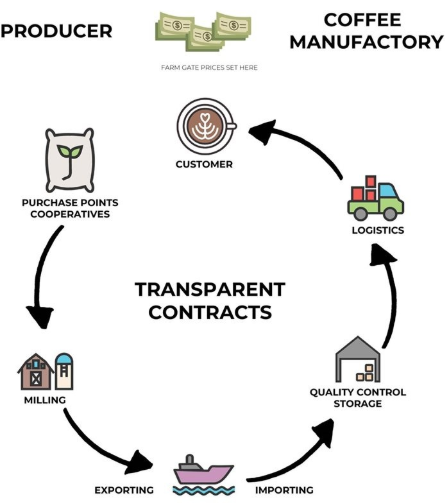 Hình ảnh minh họa công nghệ Blockchain của một chuỗi cung ứng cà phê