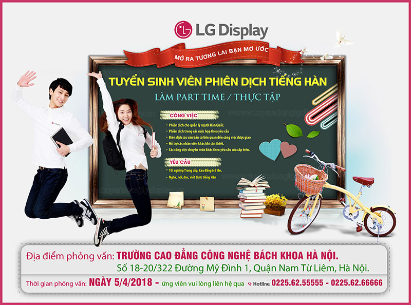 Để ổn định nguồn nhân sự biết tiếng Hàn, ngày 16/3 vừa qua, Công ty LG Display Việt Nam Hải Phòng và Trường Cao đẳng Công nghệ Bách khoa Hà Nội đã ký kết Hợp tác đào tạo – tuyển dụng và cấp học bổng cho sinh viên của Trường, dành cho các em những cơ hội công việc tốt nhất ngay sau khi tốt nghiệp.