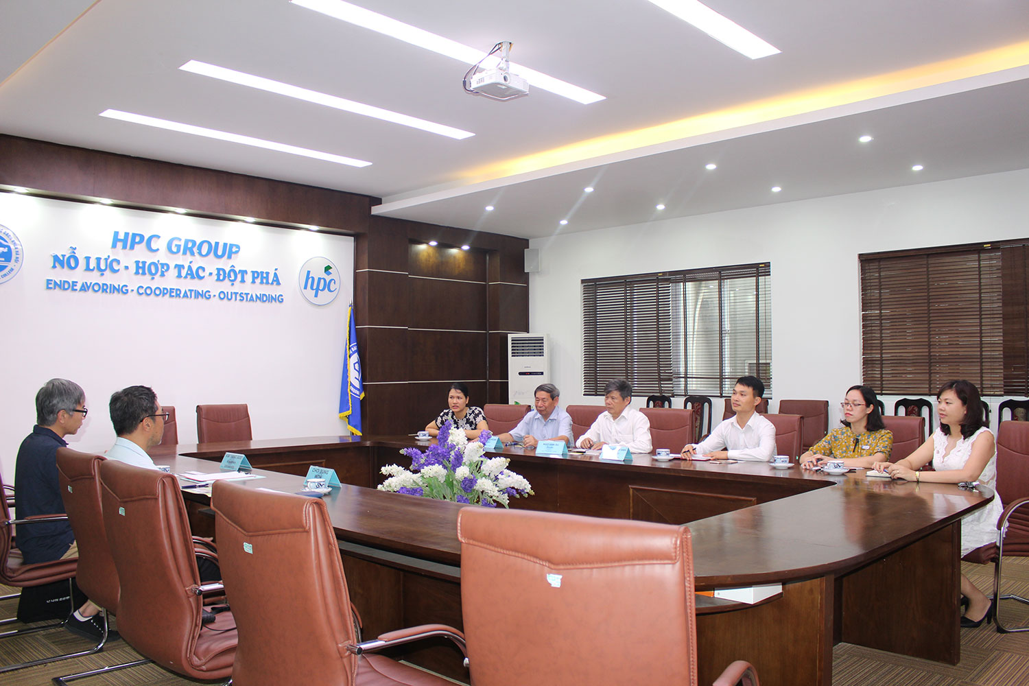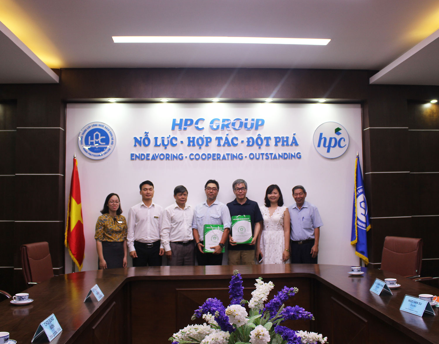 Tiếp đón đại diện của Đại học Kookmin có thầy Ngô Văn Sự – Hiệu trưởng nhà trường, TS Lê Đăng Hoan – Cố vấn cao cấp của trường, Cô Lê Thị Quỳnh Anh – Phó hiệu trưởng nhà trường, Thầy Hà Đình Thủy – Phó hiệu trưởng nhà trường.