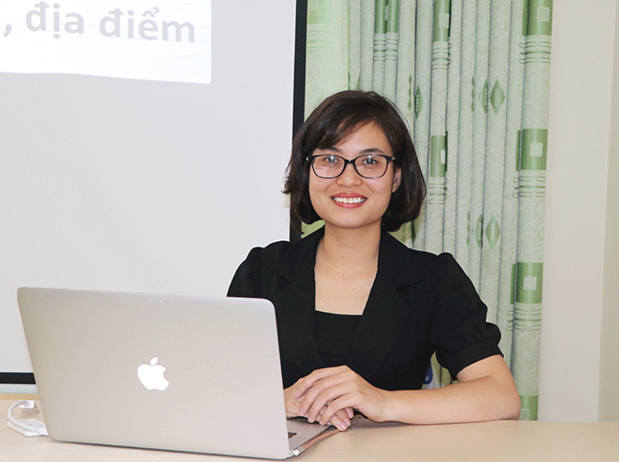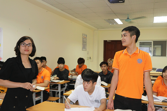 Cô Vũ Thị Vân: Tùy vào từng đối tượng mà có phương pháp khác nhau. Đối với sinh viên Công nghệ thông tin, khối lượng kiến thức chuyên ngành của các em khá nặng nên tôi dùng phương pháp “đơn giản hóa”, sử dụng nhiều hình ảnh trực quan sinh động giúp các em dễ nhớ và nhớ từ mới lâu hơn. Tôi cũng hay tổ chức các hoạt động nhóm cho các em đóng kịch, thuyết trình nhằm tăng tính tương tác, hiệu quả học tập, ngoài ra giúp các em gắn kết với nhau hơn.