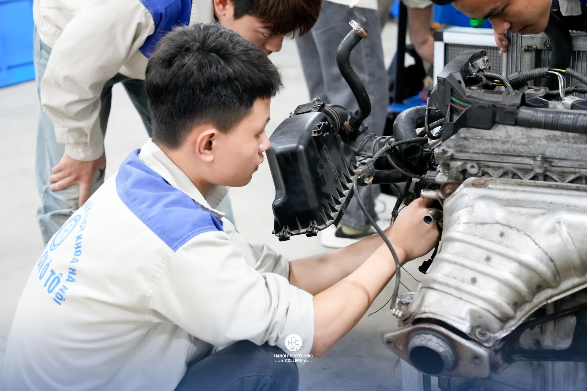 Mùa hè gõ cửa cũng là lúc sinh viên ngành Công nghệ Kỹ thuật Ô tô bước vào chặng cuối của hành trình học kỳ – thời điểm nước rút với những sản phẩm đồ án 2025 phục vụ tốt nghiệp. Ở xưởng thực hành tiếng máy, tiếng gõ phím và cả những tiếng cười xen lẫn áp lực đã tạo nên một bức tranh đầy màu sắc của tuổi trẻ đang miệt mài theo đuổi đam mê cơ khí.