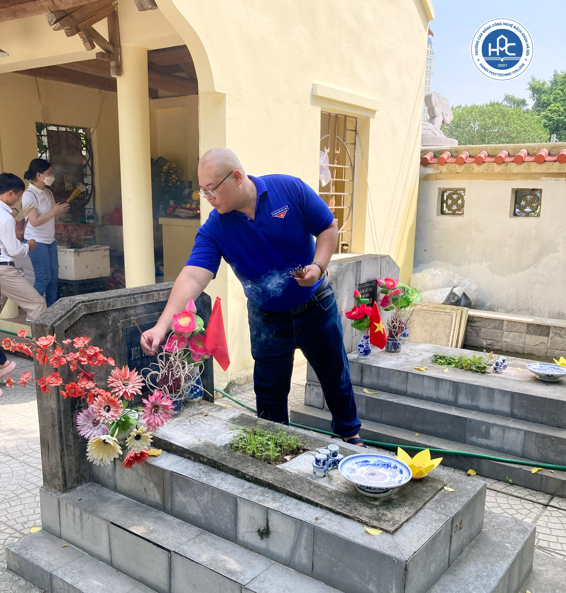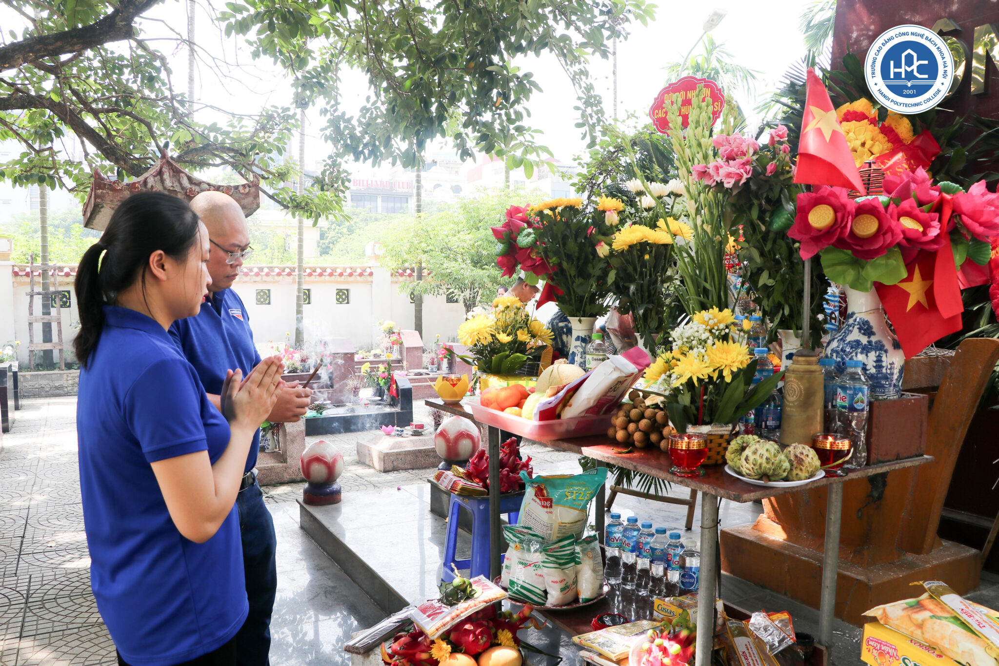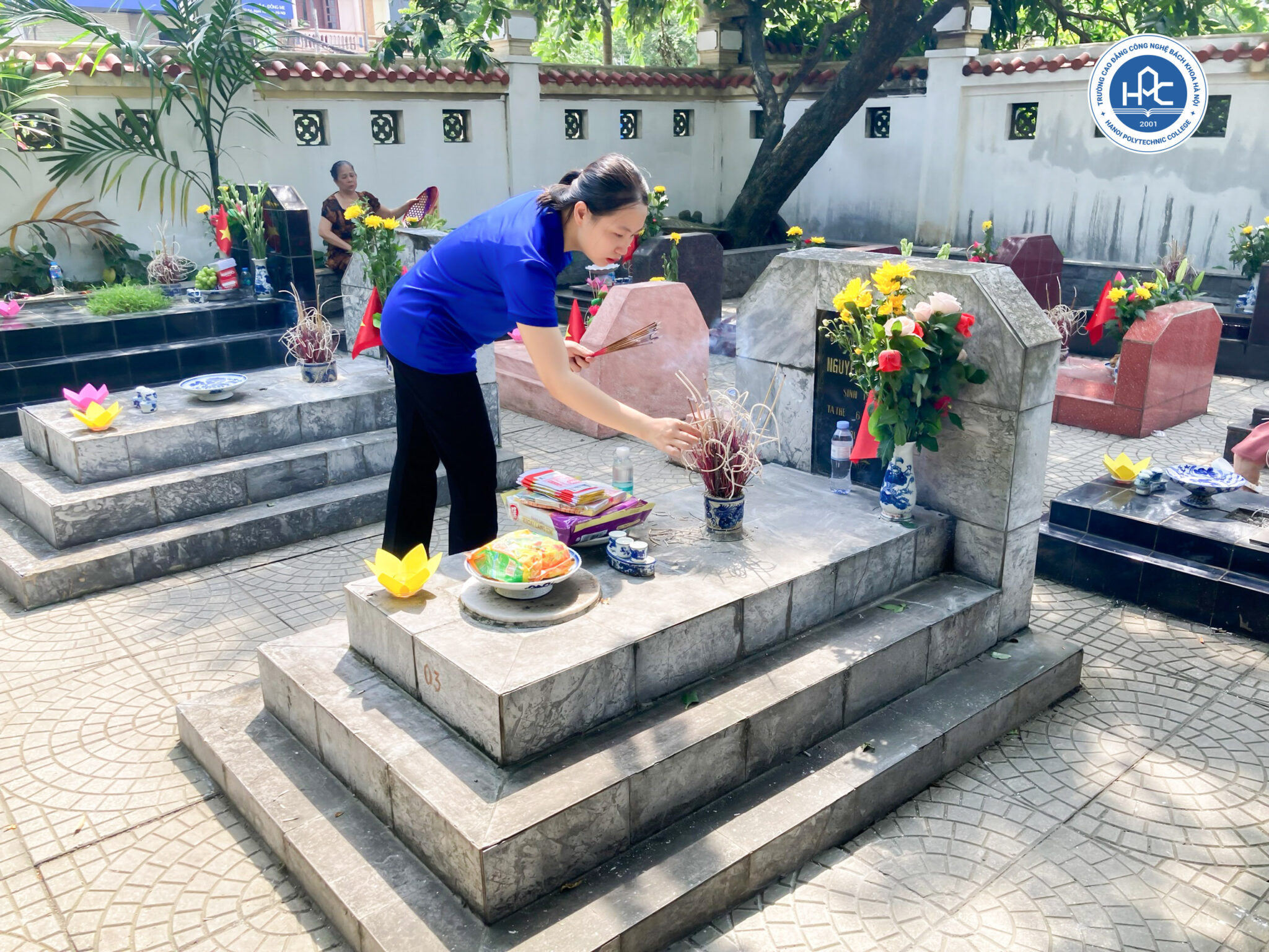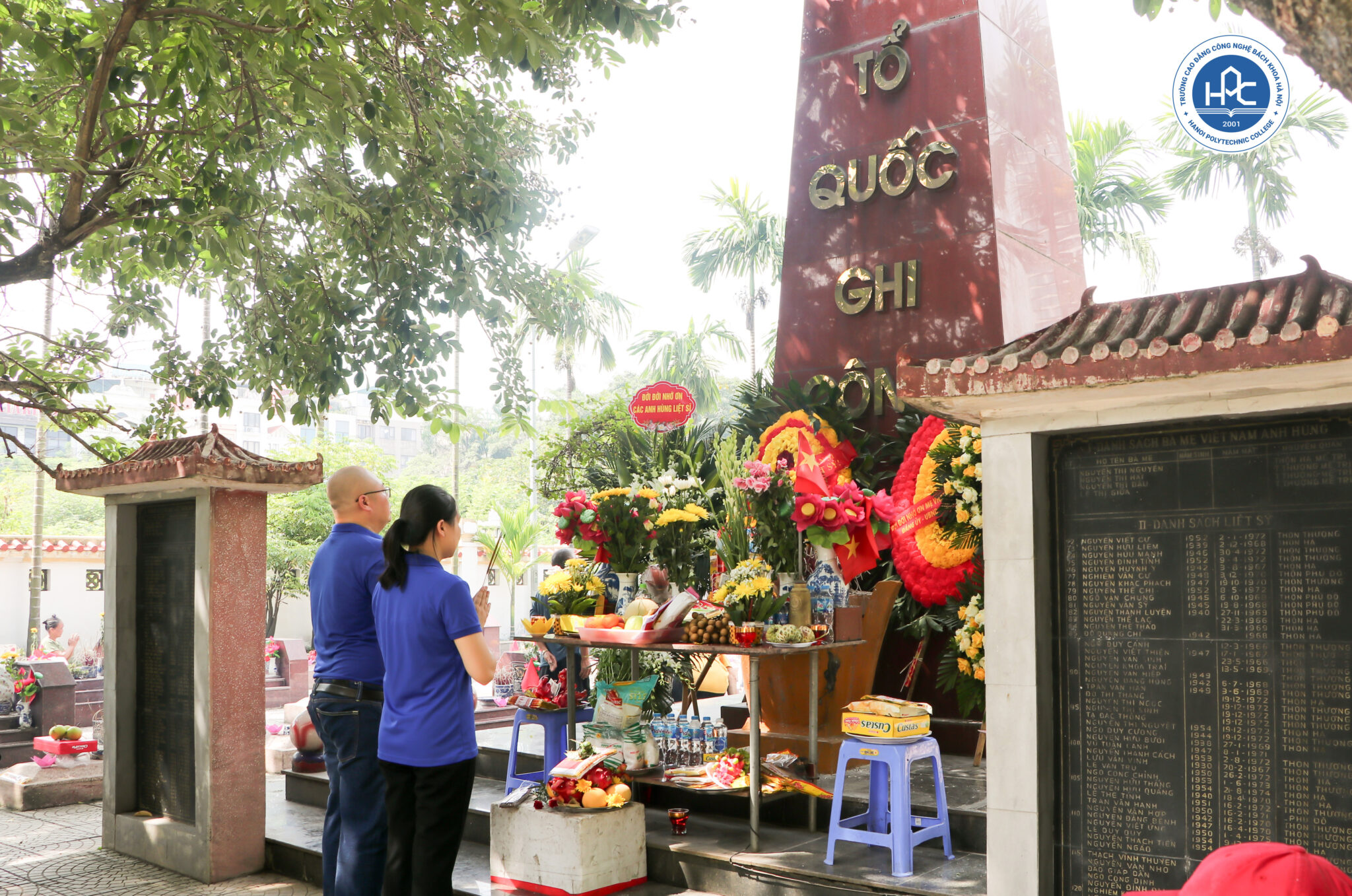 Trong không khí trang nghiêm, thành kính, đại diện Đoàn Thanh niên HPC đã dâng hương, dâng hoa, kính cẩn nghiêng mình mặc niệm tưởng nhớ các anh hùng liệt sỹ và thắp nén hương thơm trên các mộ phần trong nghĩa trang.