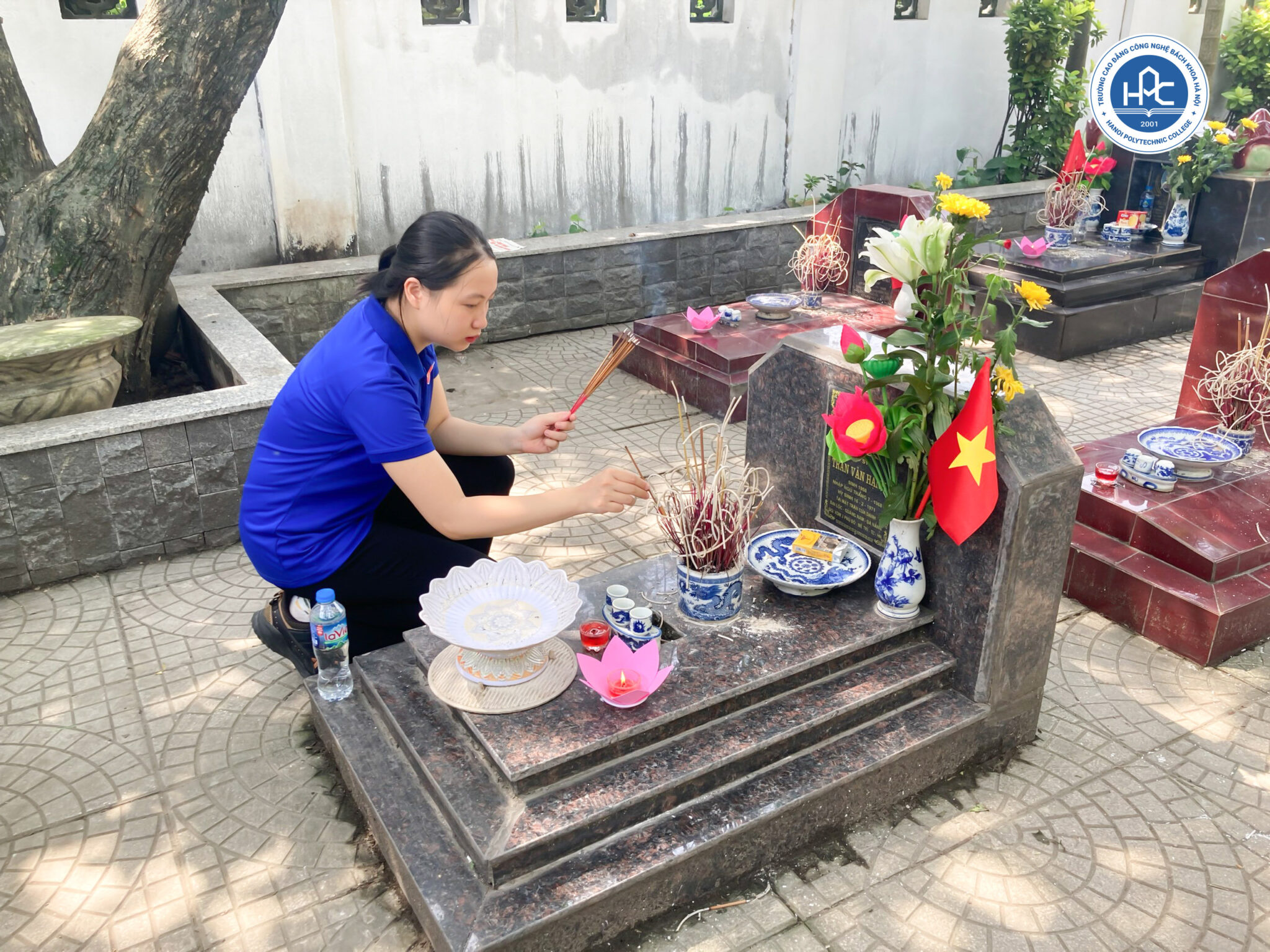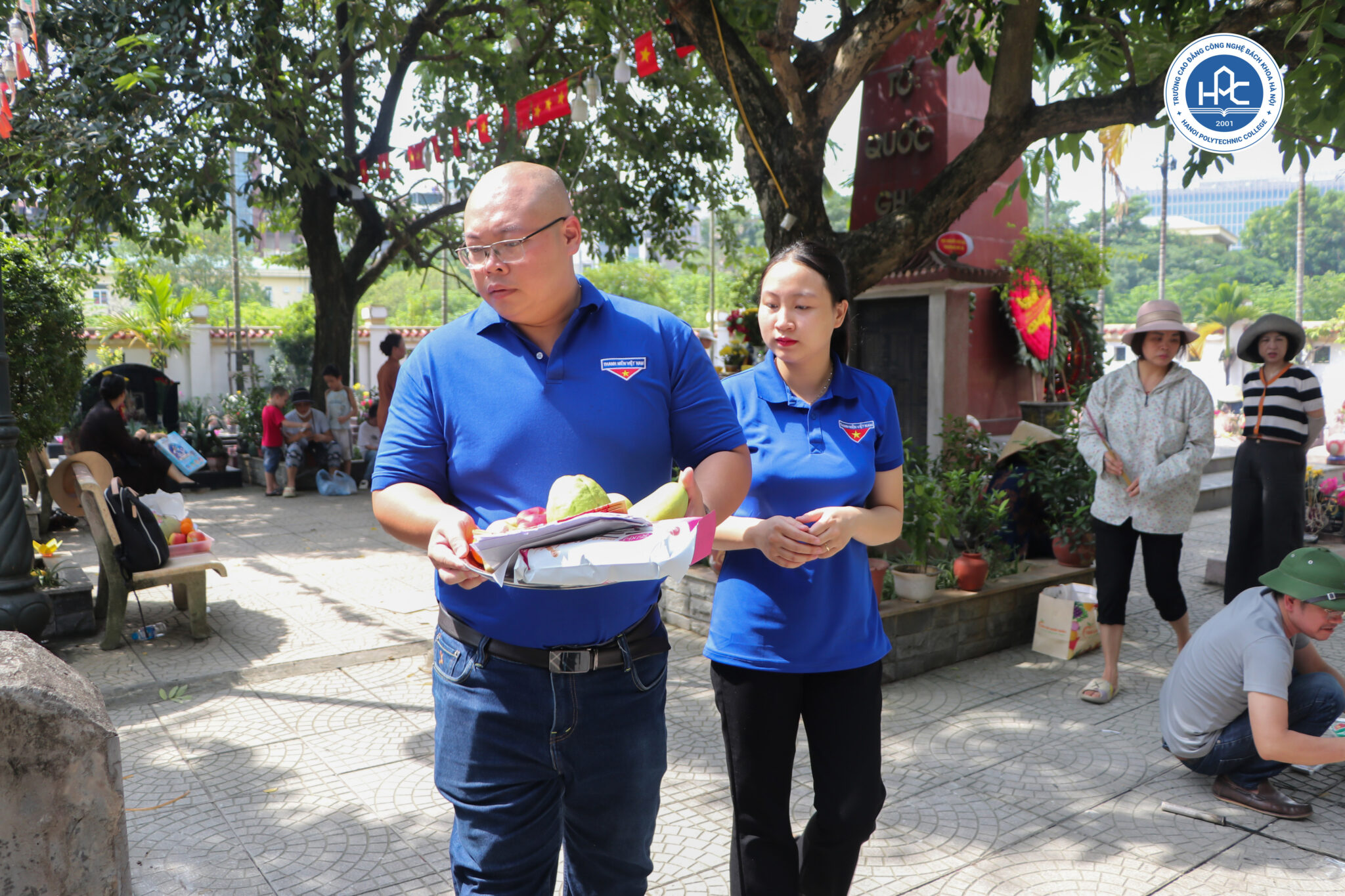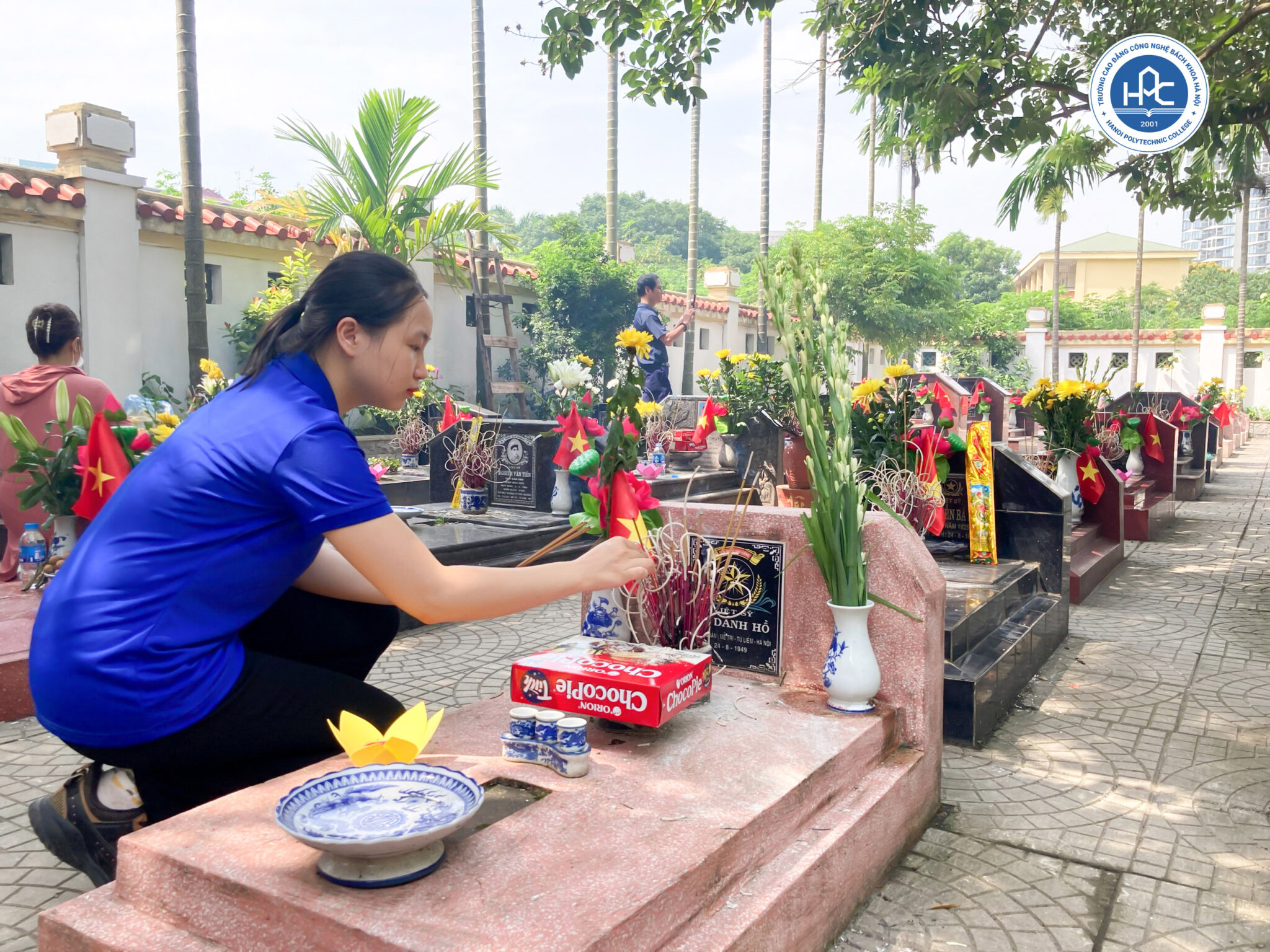 Sáng ngày 27/7, Ban Chấp hành Đoàn Thanh niên Trường Cao đẳng Công nghệ Bách khoa Hà Nội (HPC) tổ chức lễ thắp hương tri ân tại nghĩa trang liệt sỹ liên phường Mễ Trì – Phú Đô (Nam Từ Liêm, Hà Nội), nhân kỷ niệm 77 năm Ngày Thương binh Liệt sỹ Việt Nam.
