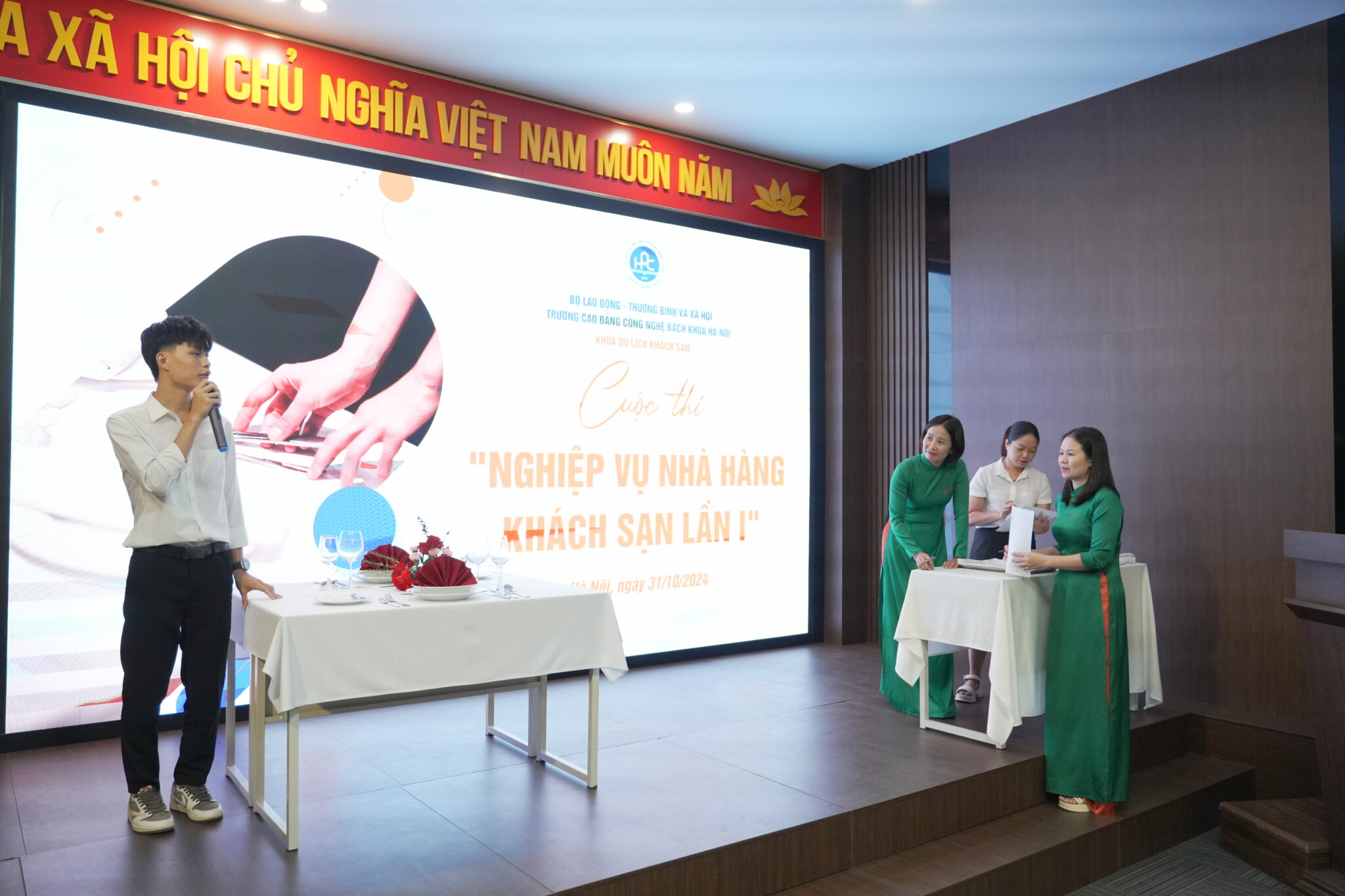 Mới đây, thầy và trò Khoa Du lịch – Khách sạn Trường Cao đẳng Công nghệ Bách khoa Hà Nội (HPC) đã hân hoan đón tin vui khai trương trung tâm thực hành mới. Dự kiến, trong năm học 2025 – 2026 trung tâm sẽ đi vào hoạt động phục vụ hơn 1200 sinh viên đang theo học tại Nhà trường.
