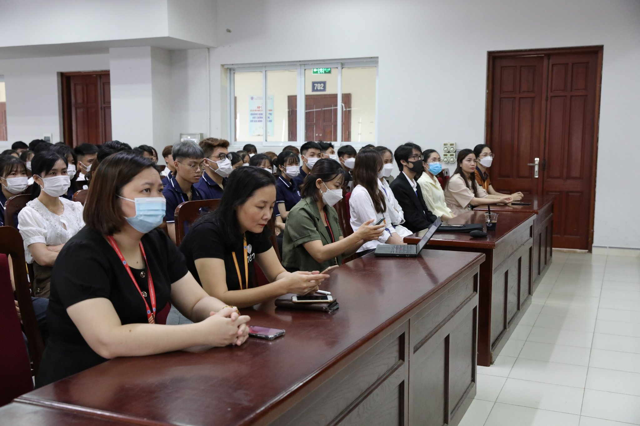 Tại Khoa Ngôn ngữ và Văn hóa Hàn Quốc, ngay từ 8h sáng, các tân sinh viên đã ngồi chật kín Hội trường tầng 7 của Nhà trường. Trọng phần giao lưu hỏi đáp, những vấn đề liên quan tới du học cũng như cơ hội việc làm khi ra trường được sinh viên quan tâm đặt câu hỏi nhiều. Mọi thắc mắc của các bạn đều được thầy cô trong Khoa tư vấn cụ thể rõ ràng khiến các tân binh rất phấn khởi.