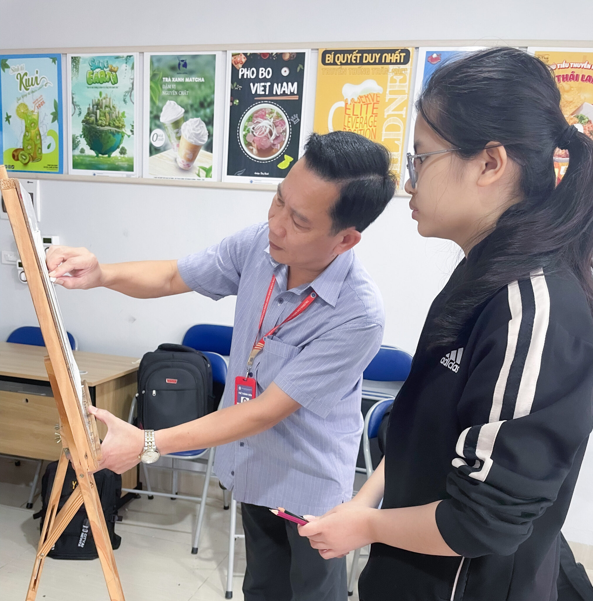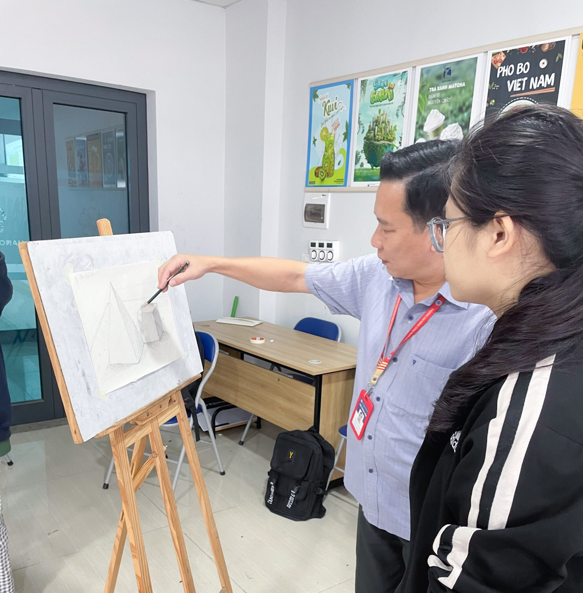 Thầy Nguyễn Thái Học – Phó trưởng Khoa Công nghệ thông tin HPC hướng dẫn tận tình cho sinh viên thực hành môn Hình họa
