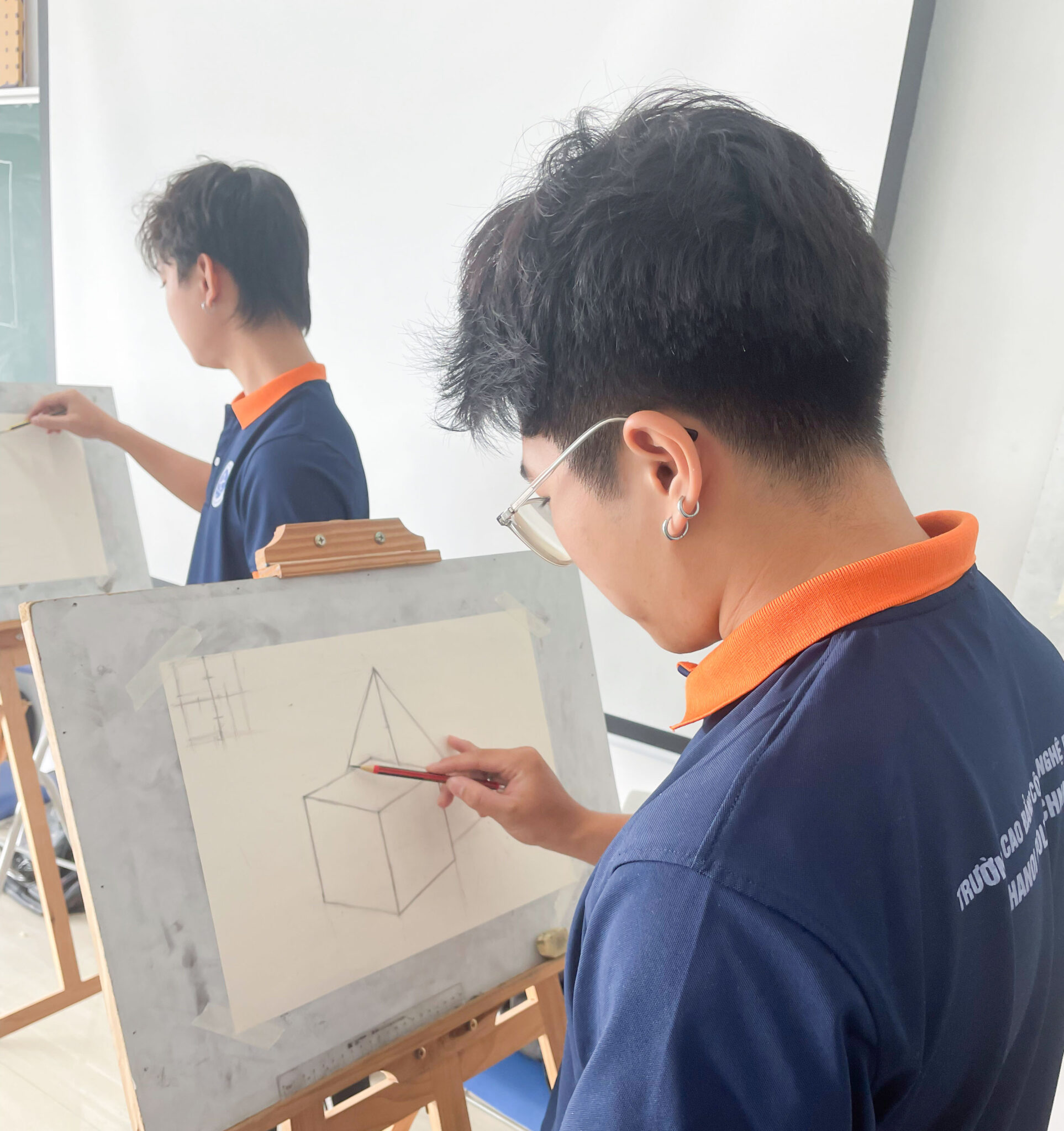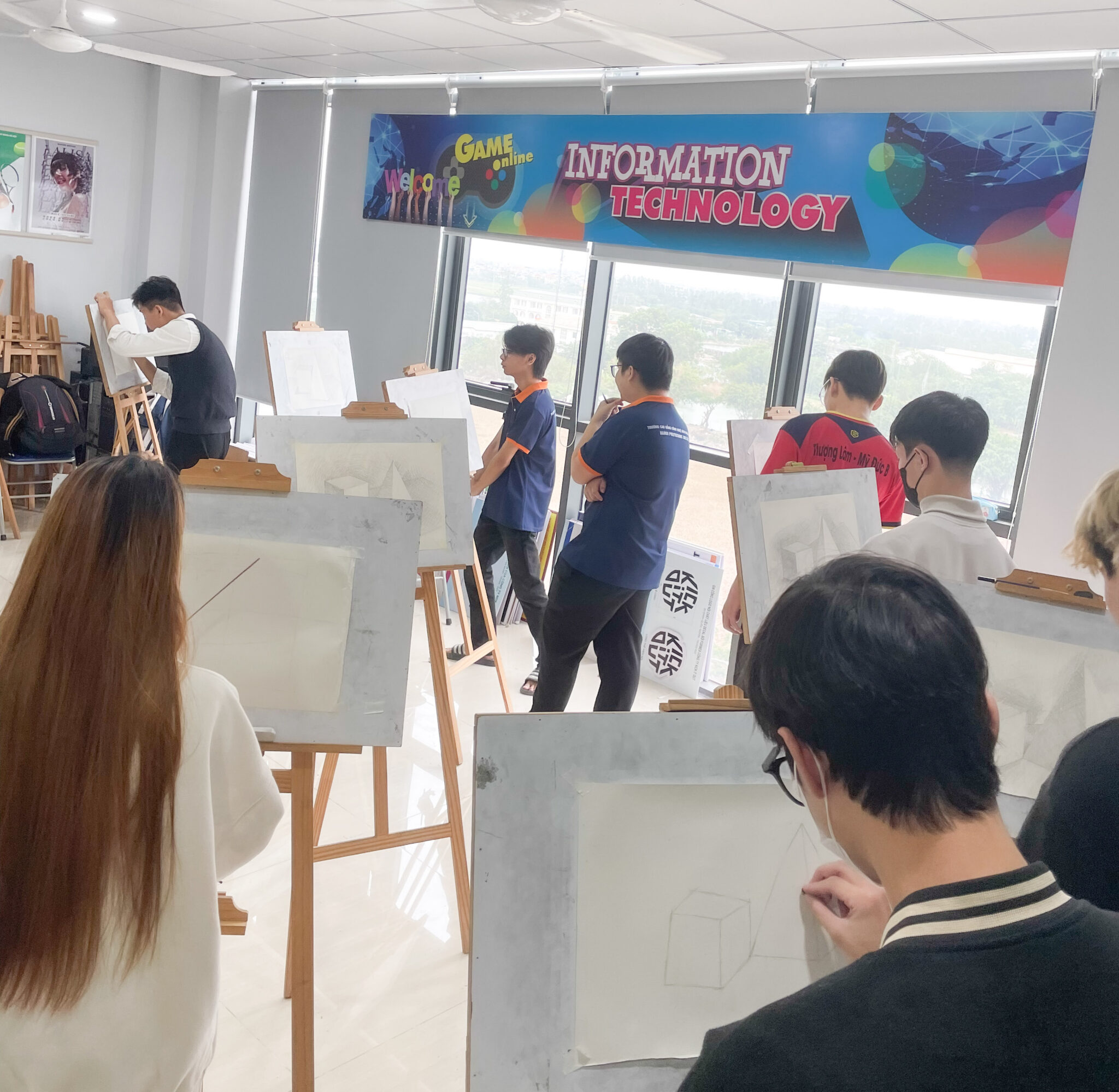 Sinh viên khoa Công nghệ Thông tin HPC chăm chú thực hành trong tiết học môn Hình họa