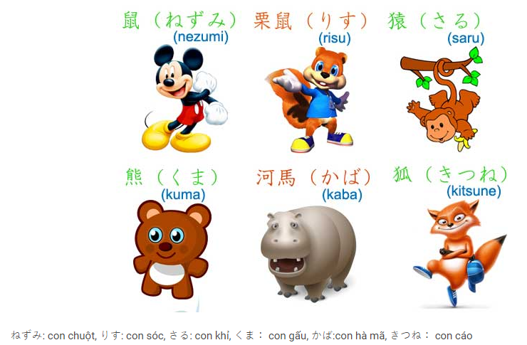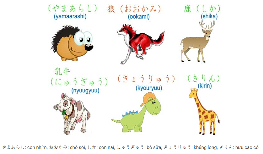 Ví dụ học từ vựng tiếng Nhật qua hình ảnh với chủ đề con vật. Kèm theo hình ảnh sinh động về mỗi loài vật là từ vựng tiếng Nhật, sẽ giúp bạn ghi nhớ từ vựng đó mỗi khi nhìn thấy hình ảnh về loài vật ở bất cứ đâu. Điều này quả là thú vị và hiệu quả đúng không nào?