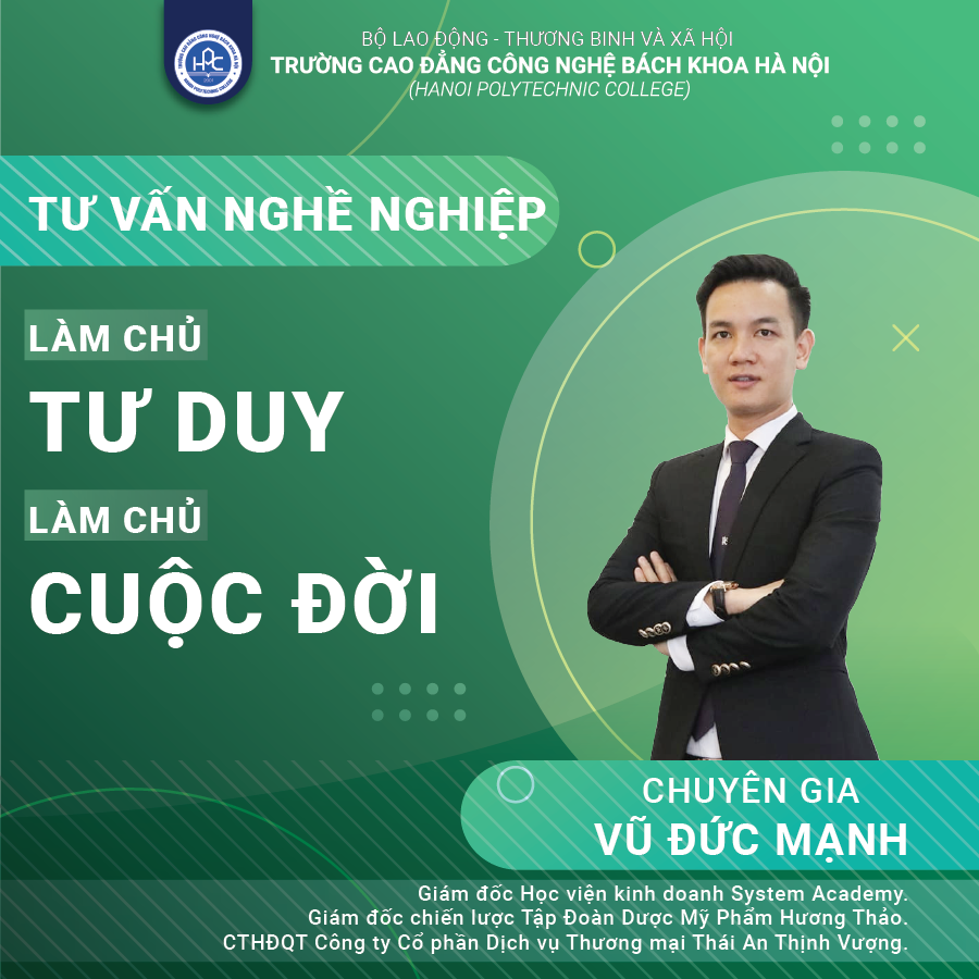Với mong muốn tạo bước đệm cho việc định hướng nghề nghiệp tương lai cho tân sinh viên K21, Trường Cao đẳng Công nghệ Bách khoa Hà Nội tổ chức buổi hội thảo chuyên đề định hướng nghề nghiệp “Làm chủ tư duy – Làm chủ cuộc đời” sẽ cung cấp cho các bạn: