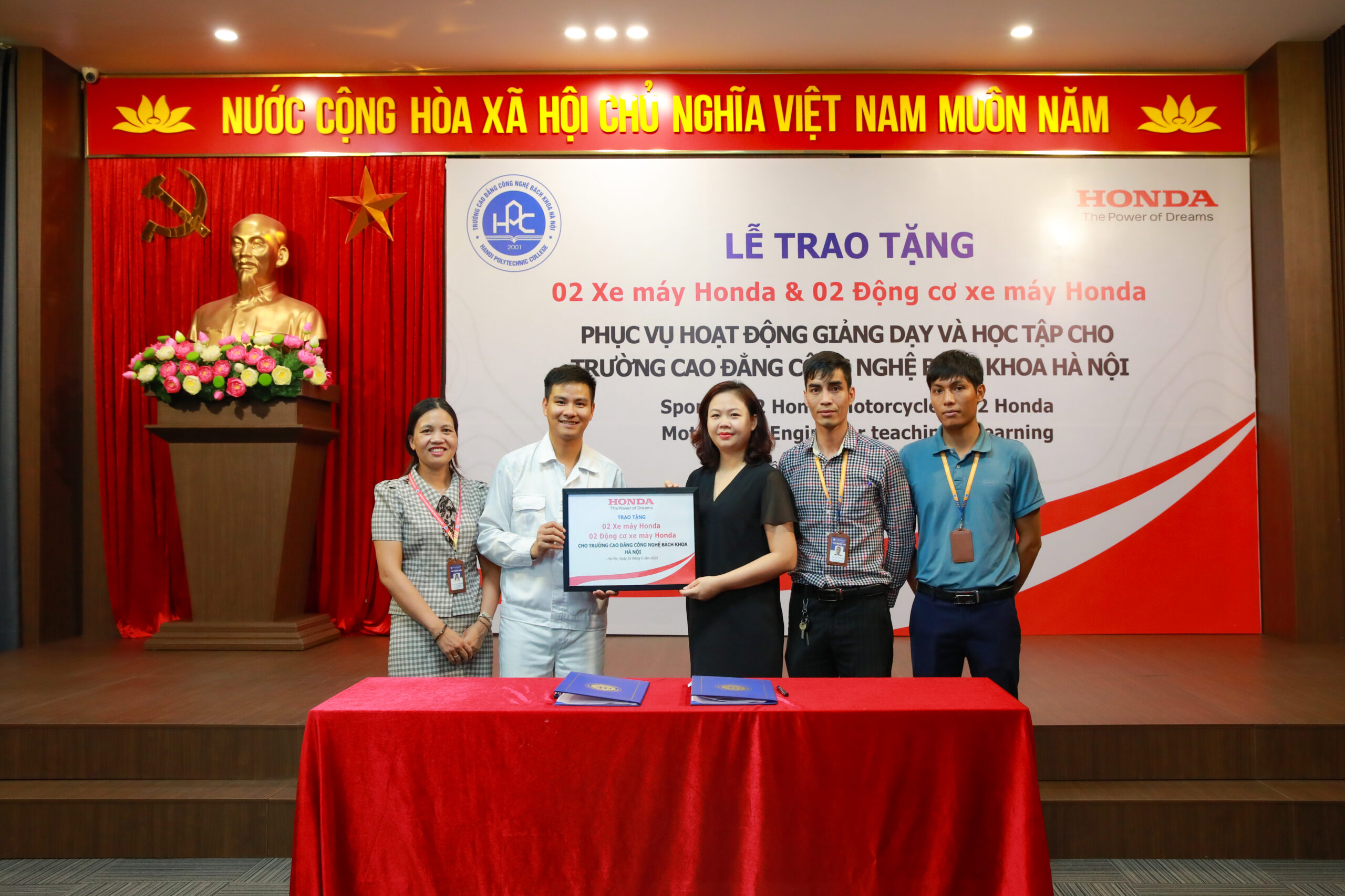 Phát huy tinh thần “rút ngắn khoảng cách từ Nhà trường đến thị trường”, sáng ngày 15/6, Trường Cao đẳng Công nghệ Bách khoa Hà Nội là đơn vị giáo dục uy tín được Công ty Honda Việt Nam tin tưởng trao tặng 02 xe máy Honda và 02 động cơ xe máy Honda.