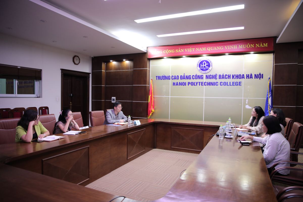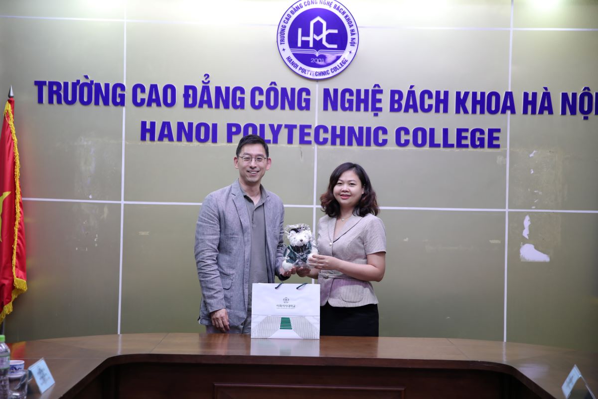 Tại buổi làm việc, Cô Lê Thị Quỳnh Anh, Phó Hiệu trưởng nhà trường và đại diện Đại học nữ Ewha – thầy Kim In Ha – Phó Trưởng ban Hợp tác quốc tế đã đã trao đổi về kế hoạch phát triển giáo dục nhằm tạo điều kiện học tập thuận lợi và gia tăng cơ hội việc làm cho sinh viên theo học chuyên ngành Ngôn ngữ và Văn hóa Hàn Quốc tại Cao đẳng Công nghệ Bách khoa Hà Nội.
