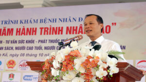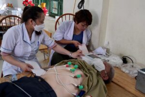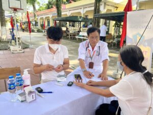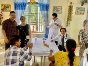 Bác sĩ, Tiến sĩ Lê Quang Minh, Trưởng khoa Điều dưỡng HPC thăm khám cho người dân tại Lục Sơn, Lục Nam, Bắc Giang