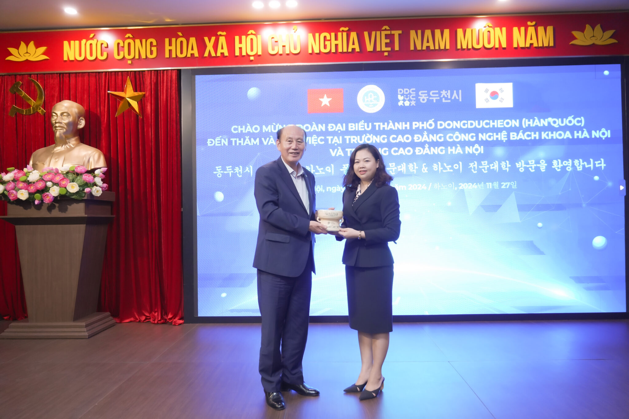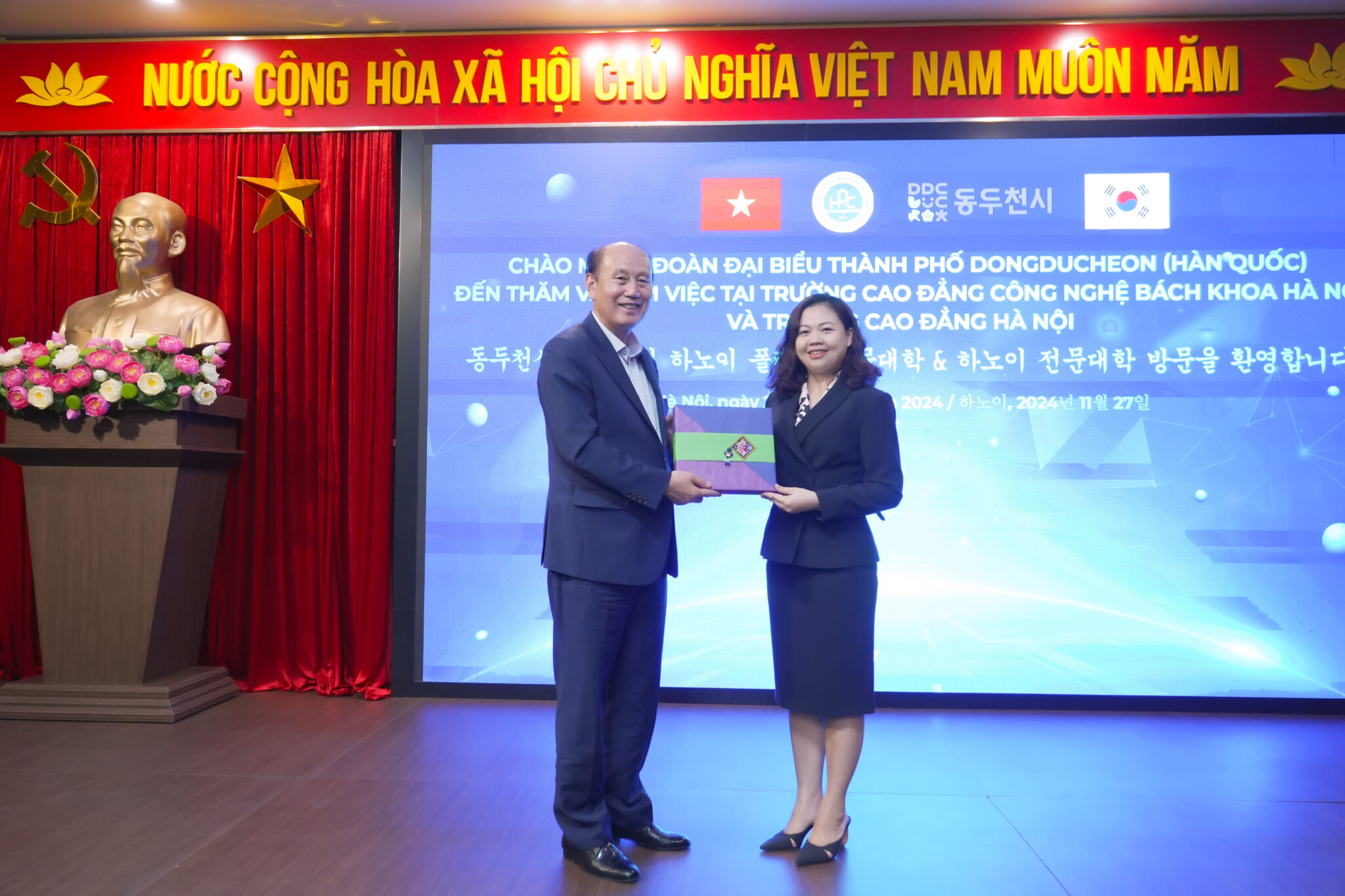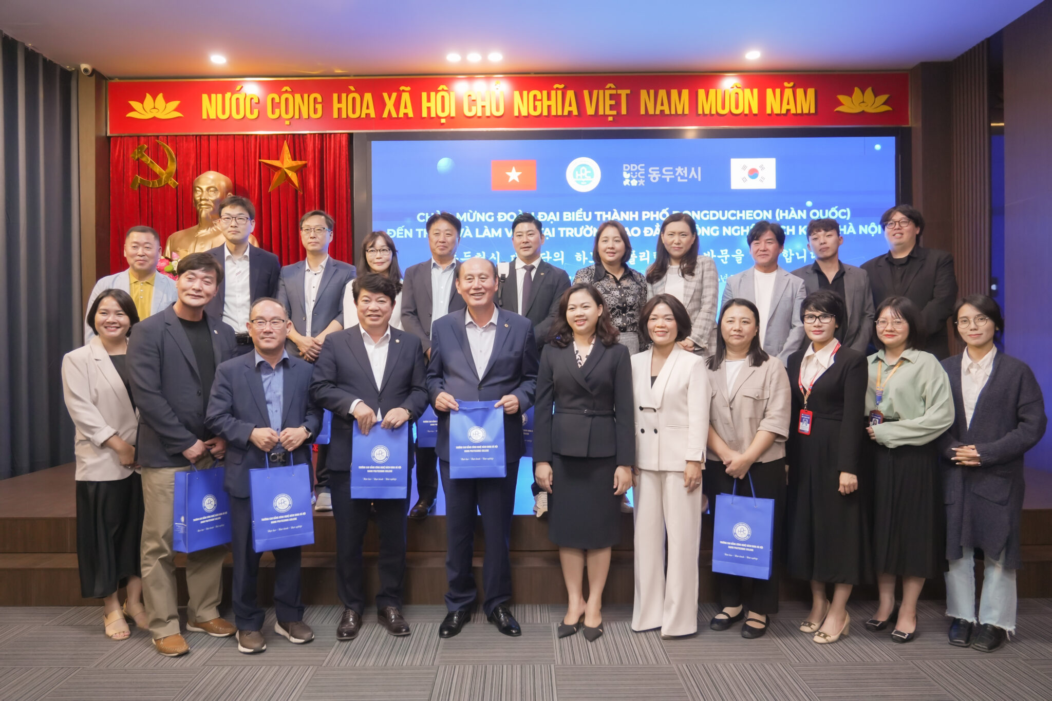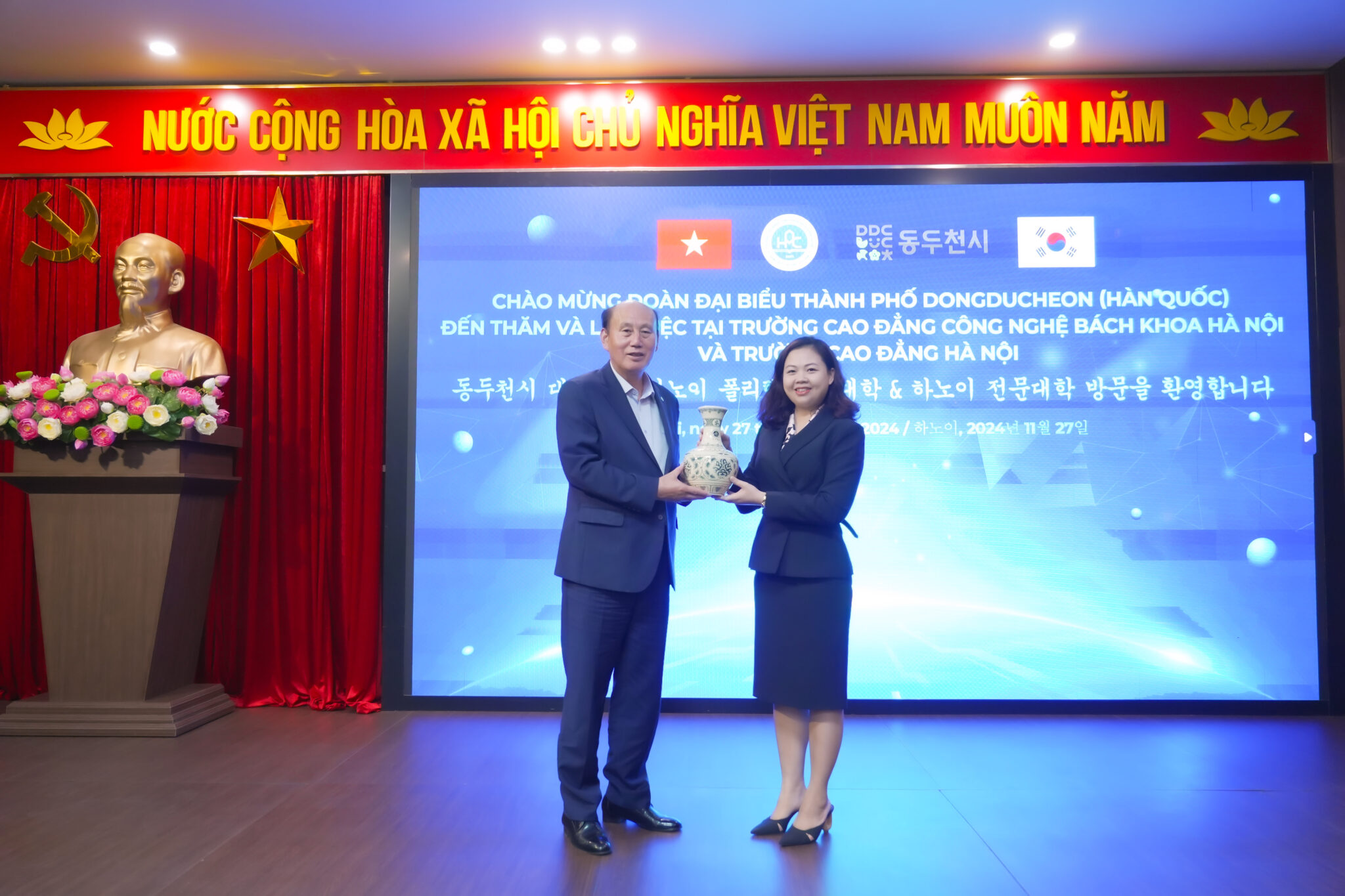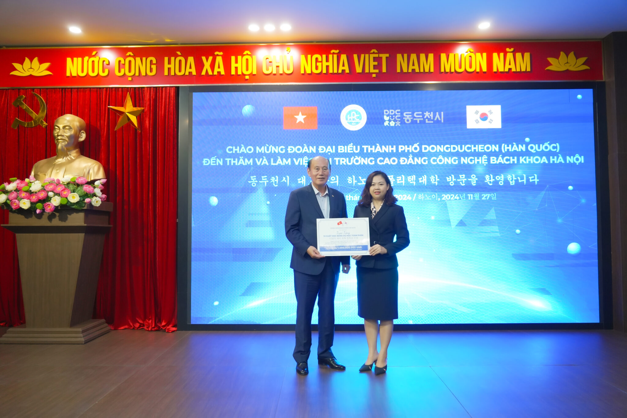 Chiều 27/11/2024, đoàn đại biểu thành phố Dongducheon (Hàn Quốc) đã đến thăm và trao học bổng trị giá lên đến 1.000.000.000 VNĐ cho sinh viên HPC.