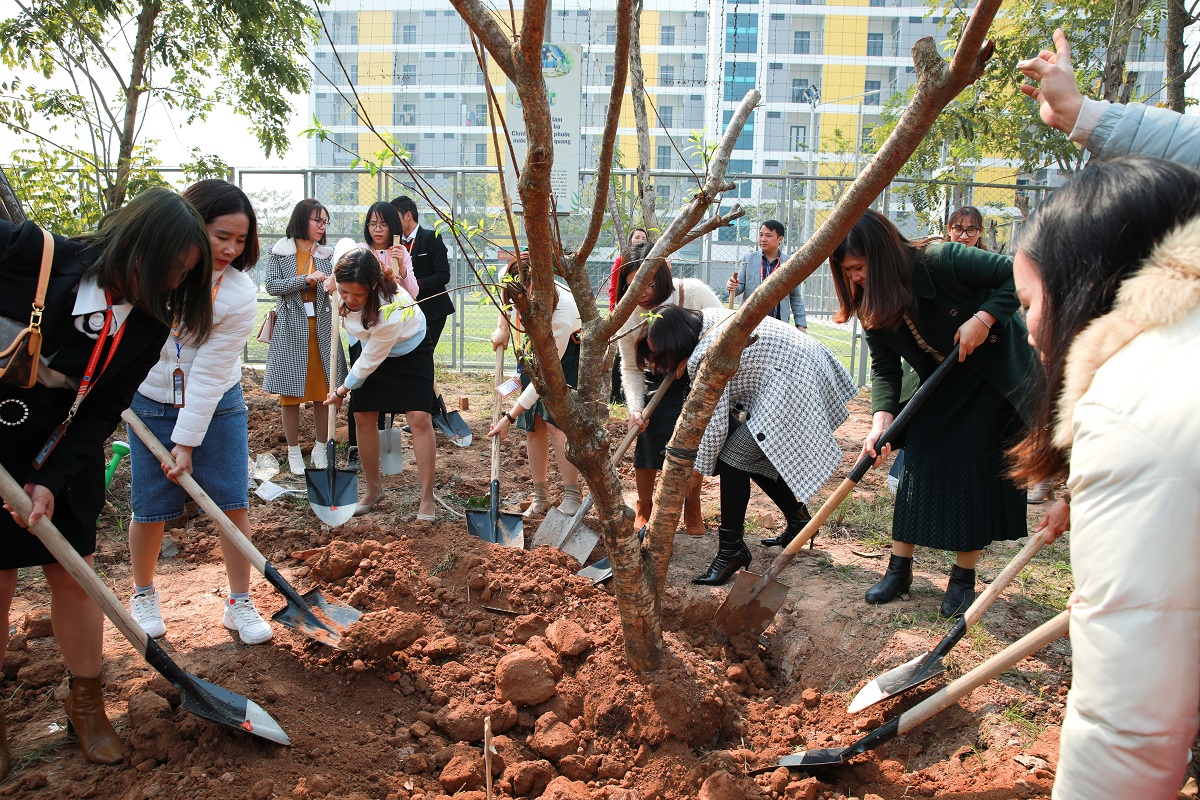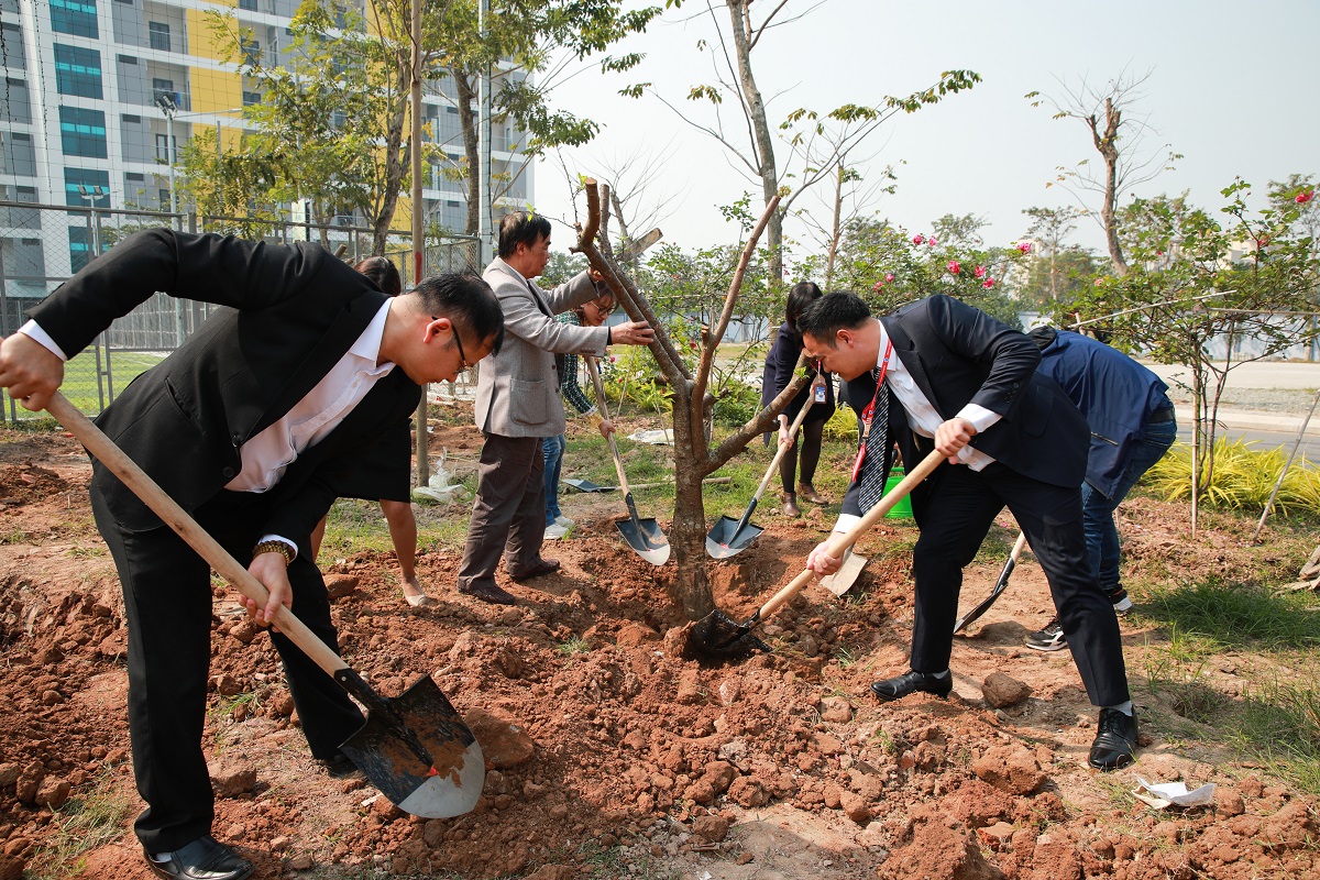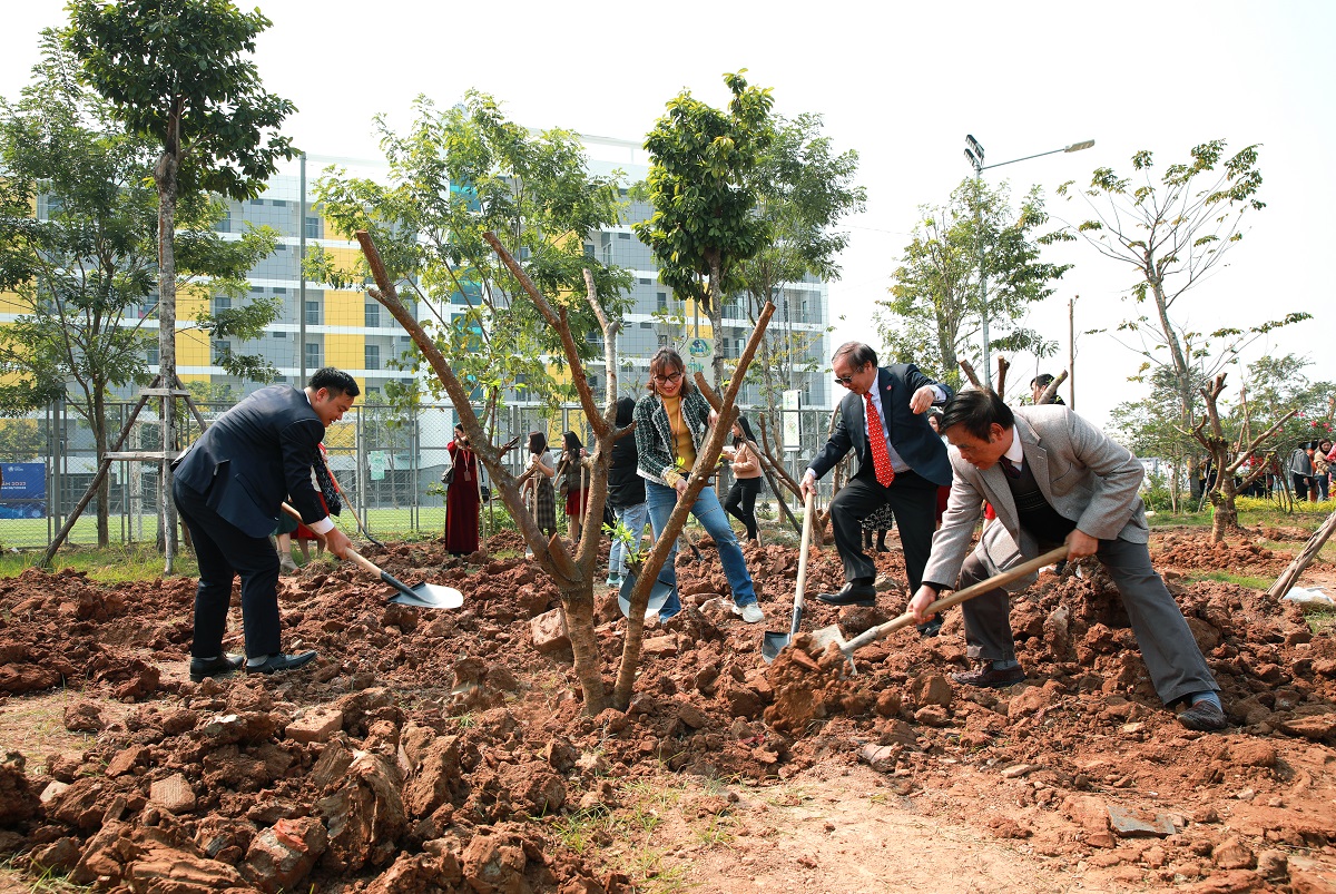 Sau buổi Lễ gặp mặt, Ban giám hiệu nhà trường cùng toàn thể cán bộ, giảng viên đã cùng nhau trồng cây phủ xanh khuôn viên nhà trường.