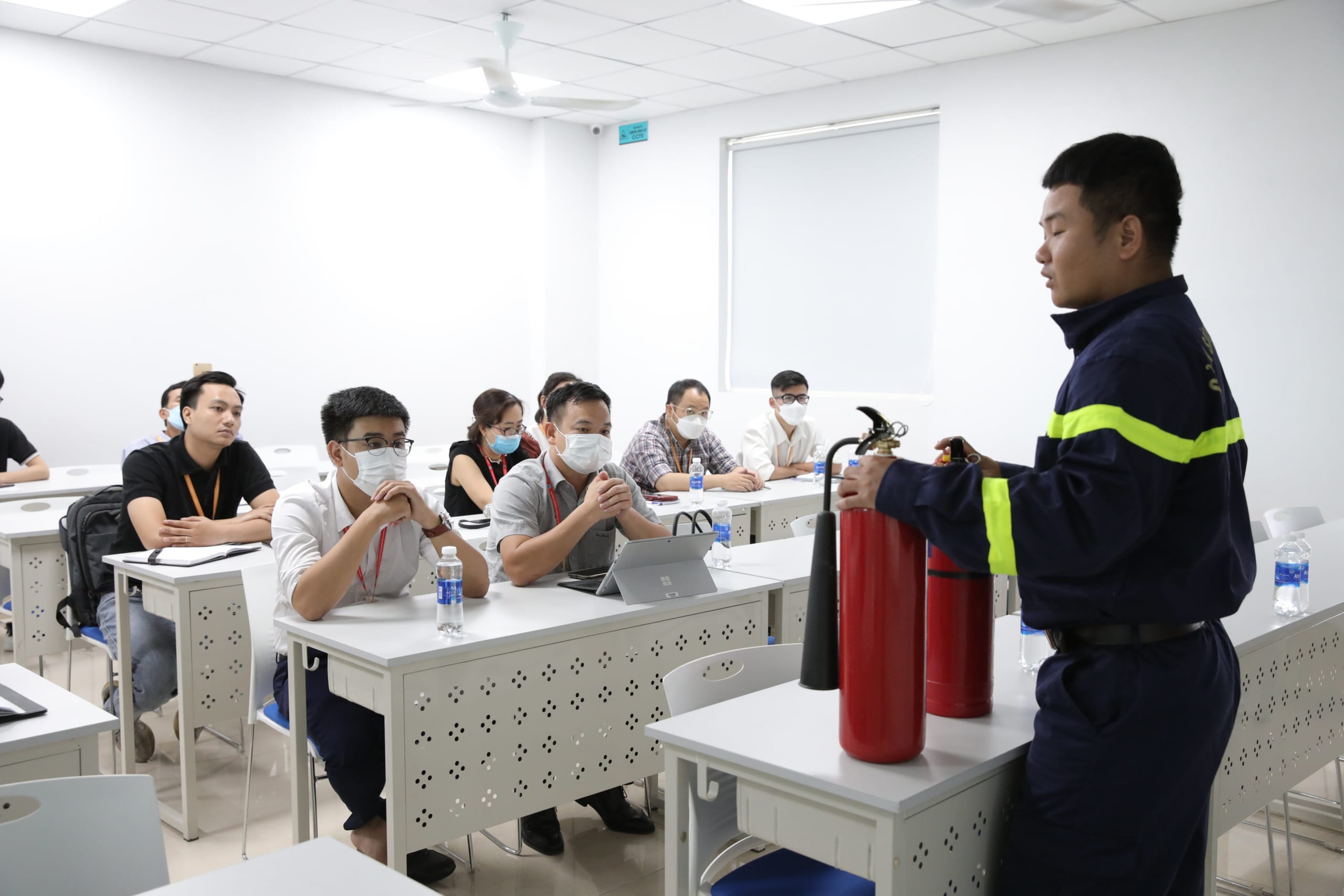 Tại buổi tập huấn phòng cháy chữa cháy, cán bộ, giảng viên, sinh viên của Nhà trường tham gia đã được cán bộ Phòng Cảnh sát PCCC&CNCH truyền đạt những kiến thức cơ bản về PCCC và CNCH…