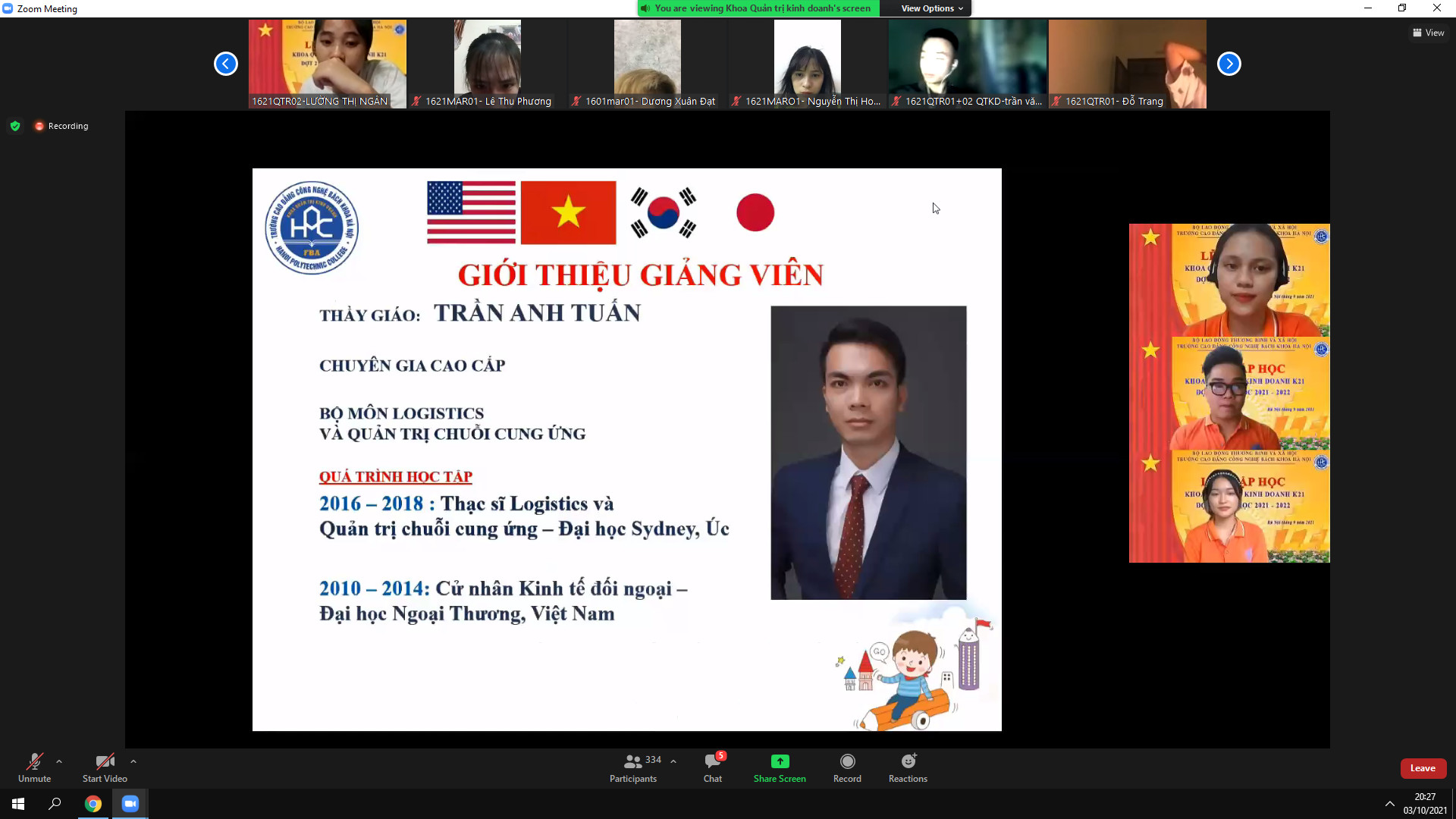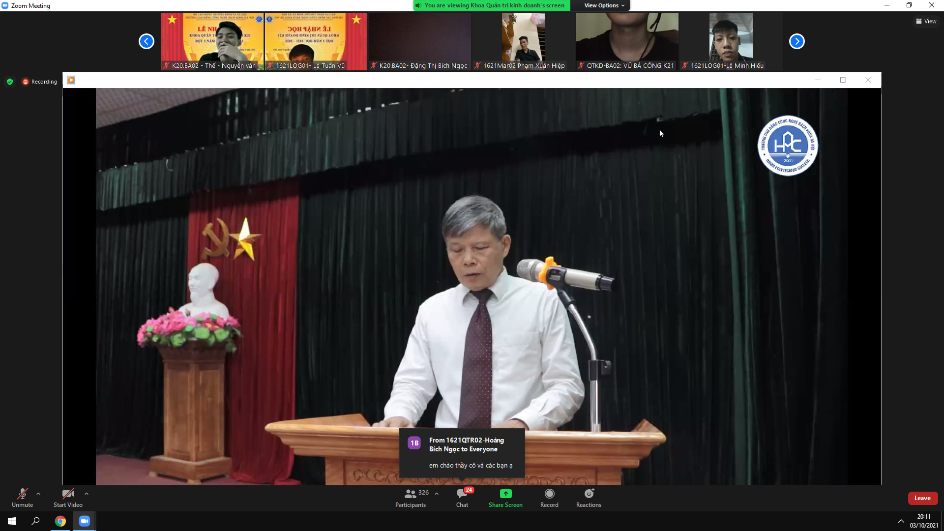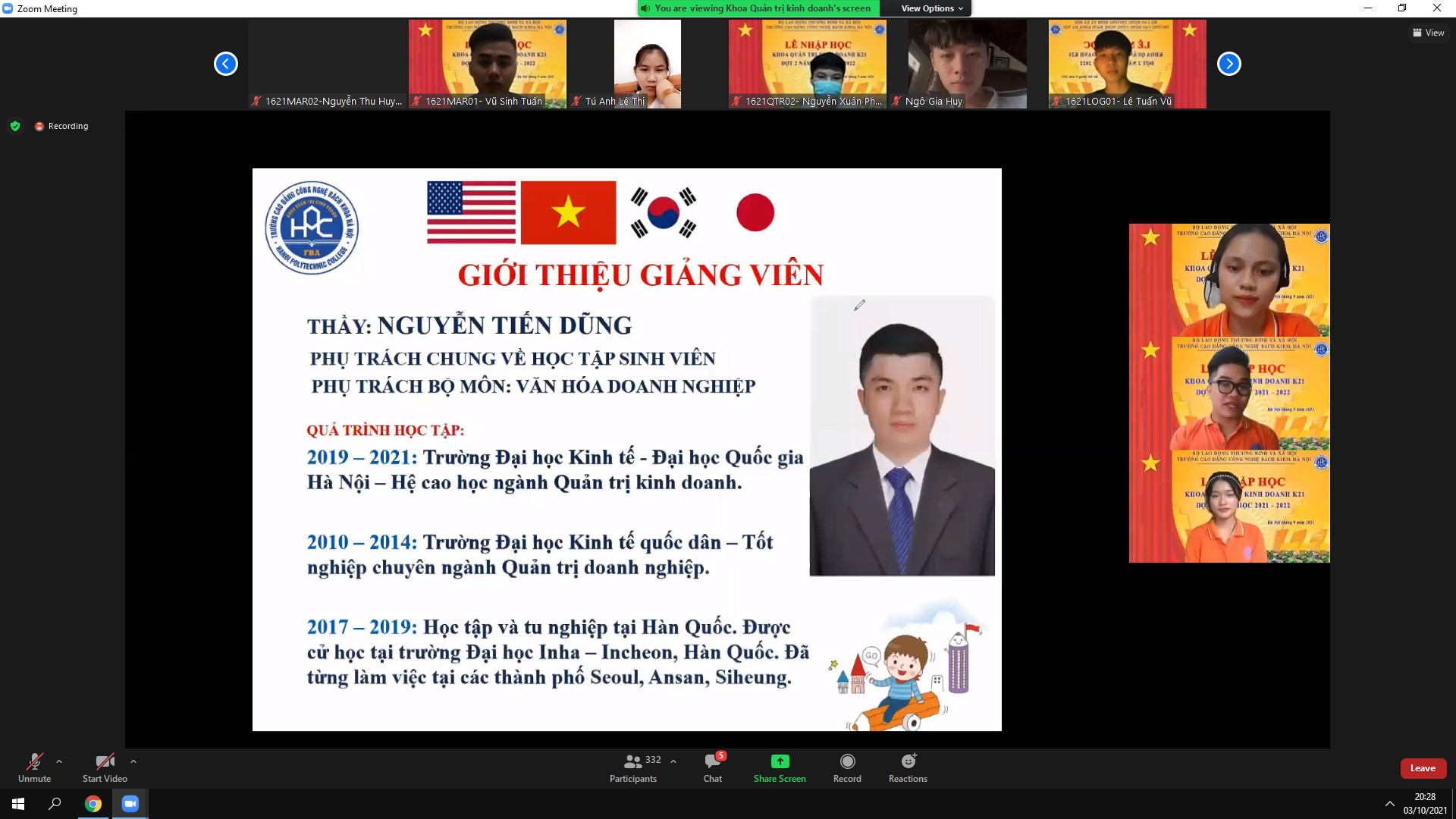 Tối ngày 2/10/2021 Khoa Khoa Quản trị kinh doanh đã tổ chức kiện online chào tân sinh viên.