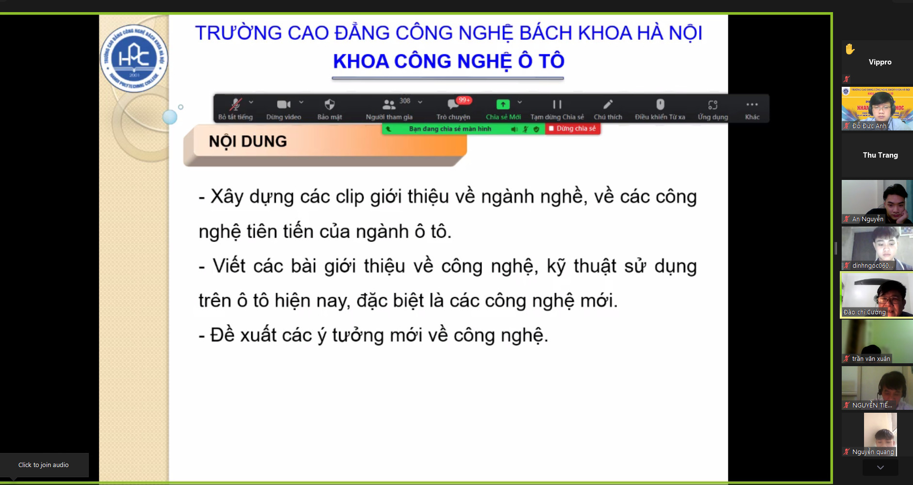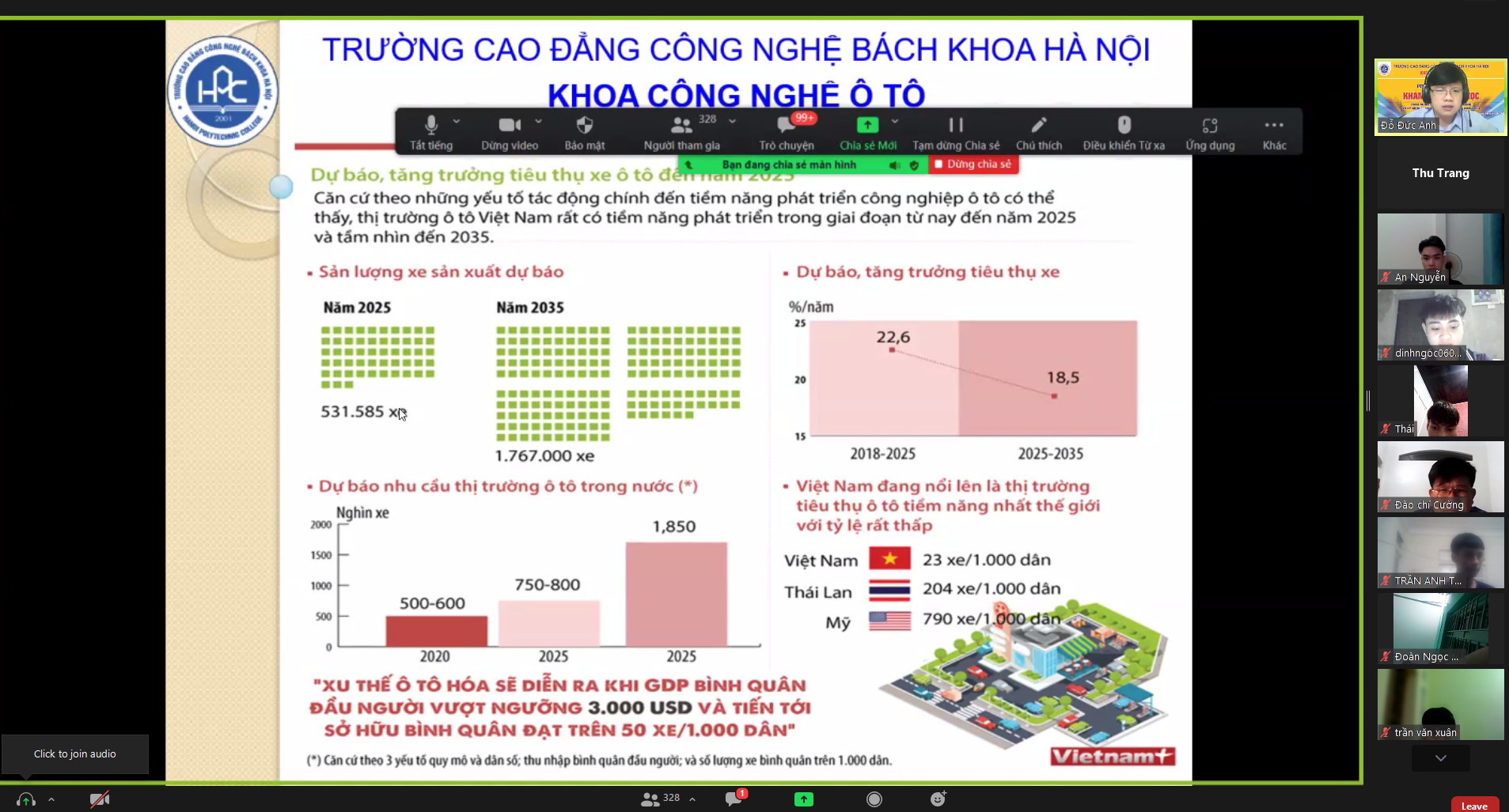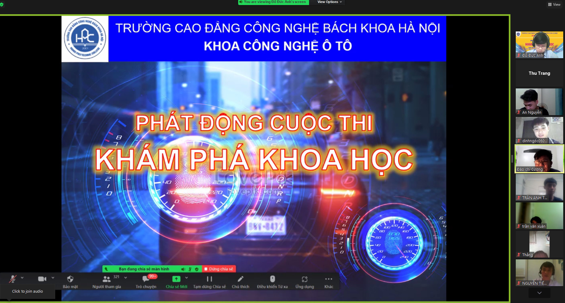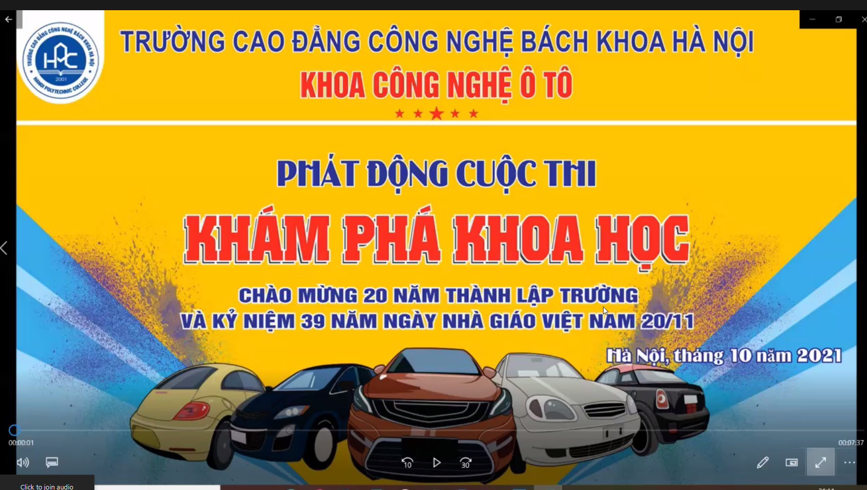 Tối ngày 6/10/2021 sinh viên Khoa Công nghệ ô tô đã tham gia sự kiện online phát động cuộc thi “Khám phá khoa học”. Cuộc thi chính là một trong những mô hình đổi mới giáo dục tiêu biểu của chương trình đào tạo gắn lý thuyết với thực hành tại HPC.
