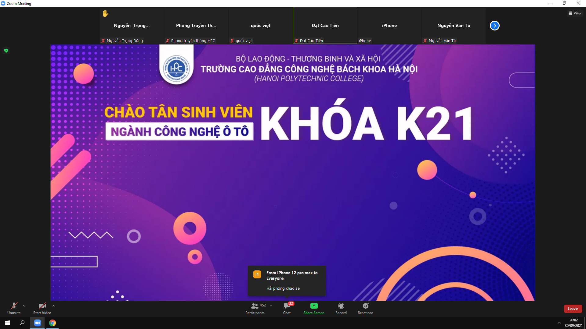 Trong không khí vui mừng của hàng ngàn Tân sinh viên đón chào một hành trình đầy hy vọng trên giảng đường, tối ngày 30/9/2021, Khoa Công nghệ Ô tô Trường Cao đẳng Công nghệ Bách khoa Hà Nội đã tổ chức sự kiện online chào tân sinh viên nhằm giúp các bạn sinh viên tìm hiểu và hòa nhập với môi trường mới.