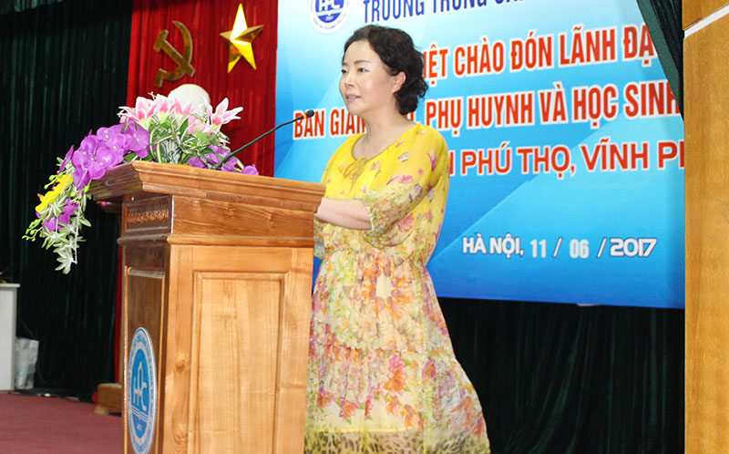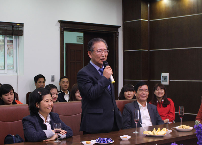 GS Han Sang In trong buổi gặp gỡ với tập thể cán bộ, giáo viên nhà trường