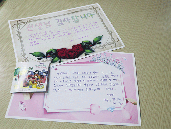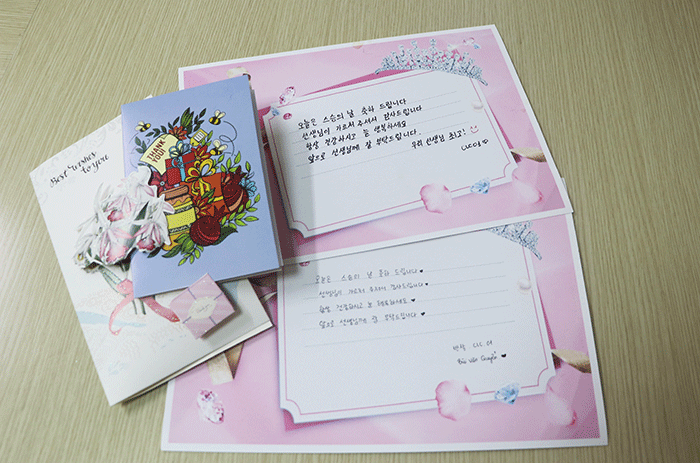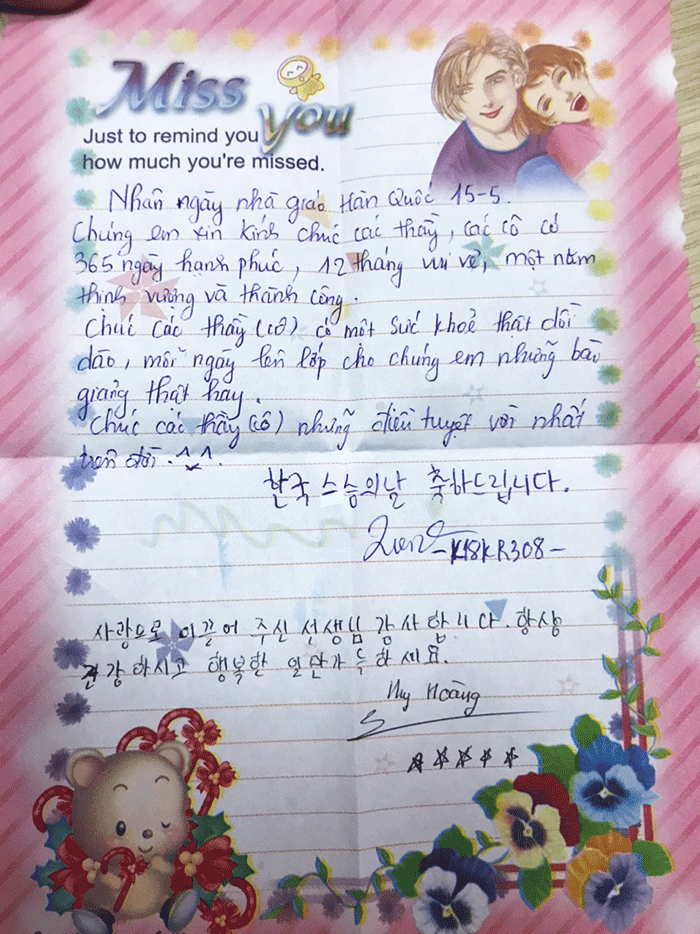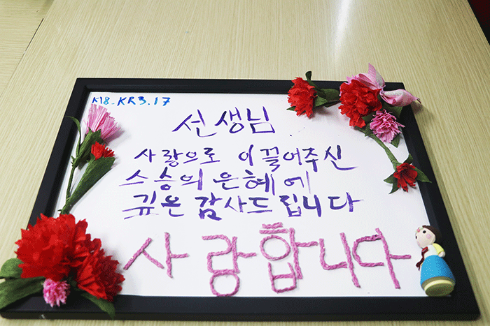Dưới đây là một số hình ảnh về món quà tri ân thầy cô của các em sinh viên Khoa Ngôn ngữ và Văn hóa Hàn Quốc: