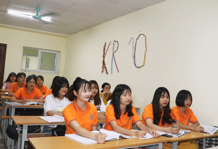 Sinh viên lớp K18.KR03 – Khoa Ngôn ngữ và Văn hóa Hàn Quốc trong một tiết luyện thi Topik