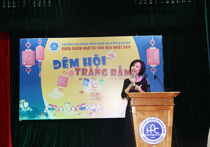 Phát biểu tại chương trình ” Đêm hội trăng rằm”, cô Phạm Thị Hà – Trưởng Khoa Ngôn ngữ và Văn hóa Nhật Bản bày tỏ: Tết Trung thu là ngày hội truyền thống của nhiều quốc gia trên thế giới, trong đó có Việt Nam và Nhật Bản. Với ý nghĩa đoàn viên, ” Đêm hội trăng rằm” là dịp để thầy trò ngành Tiếng Nhật quây quần lại bên nhau, cùng trải nghiệm những phút giây tuyệt vời của một mùa Trung thu dưới mái trường HPC. Đây cũng là dịp để gắn kết tập thể, cùng nhau nhìn lại chặng đường đã qua, cùng nhau phấn đấu chinh phục thành công ngôn ngữ Nhật bản đầy thú vị.