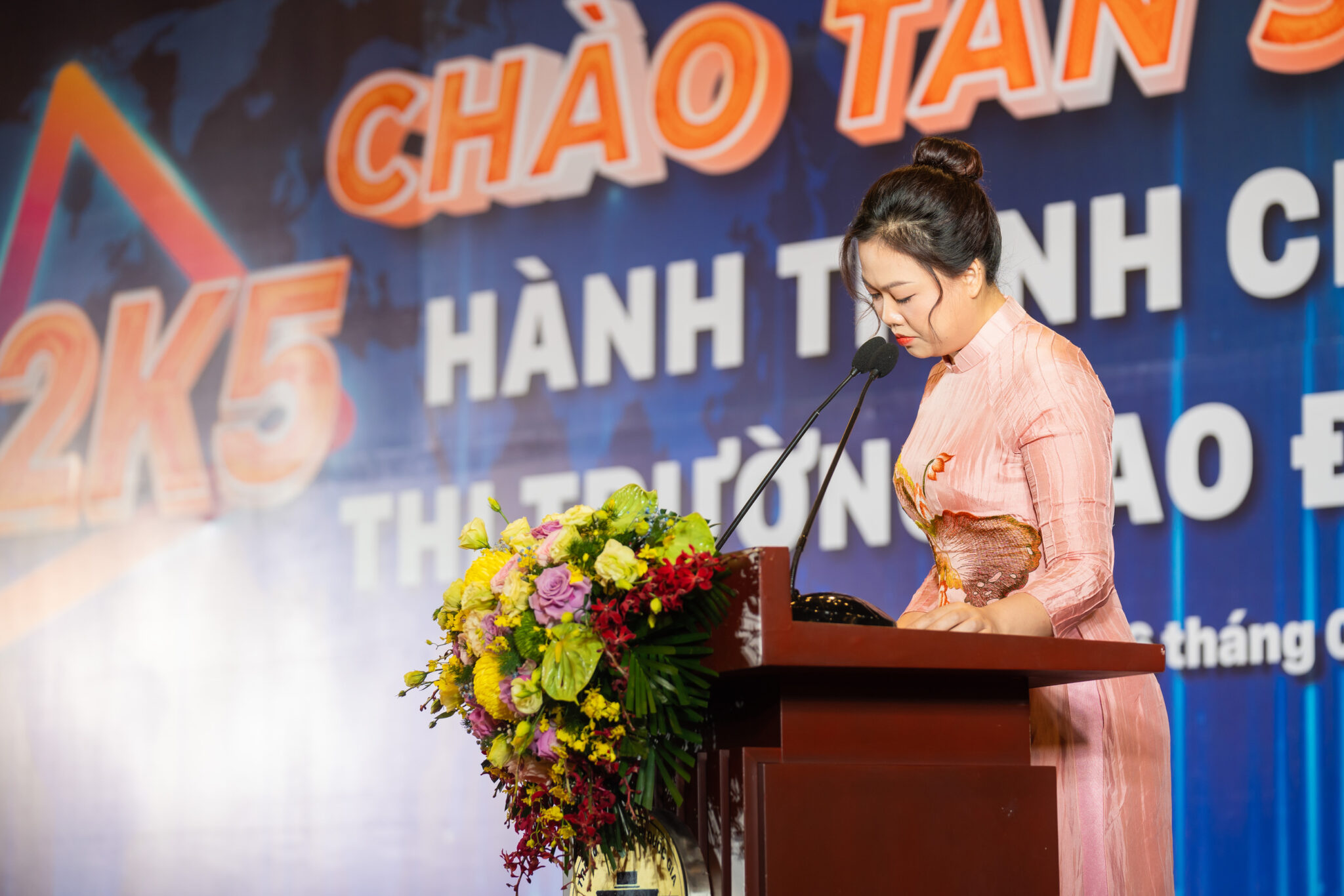 Thay mặt Ban giám hiệu Nhà trường, cô Lê Thị Quỳnh Anh đã gửi lời chúc mừng đến toàn thể tân sinh viên chính thức gia nhập đại gia đình HPC, đồng thời dặn dò các bạn không ngừng nỗ lực học tập và rèn luyện để trở thành những công dân có ích, tự tin vững bước trên thị trường lao động.