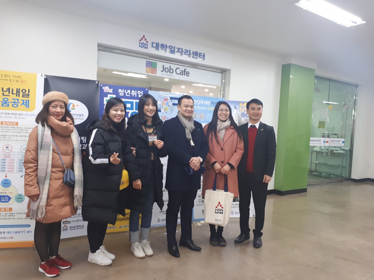 Du học sinh HPC đang học tập tại Đại học Hannam Hàn Quốc chụp ảnh lưu niệm với Ban giám hiệu trường