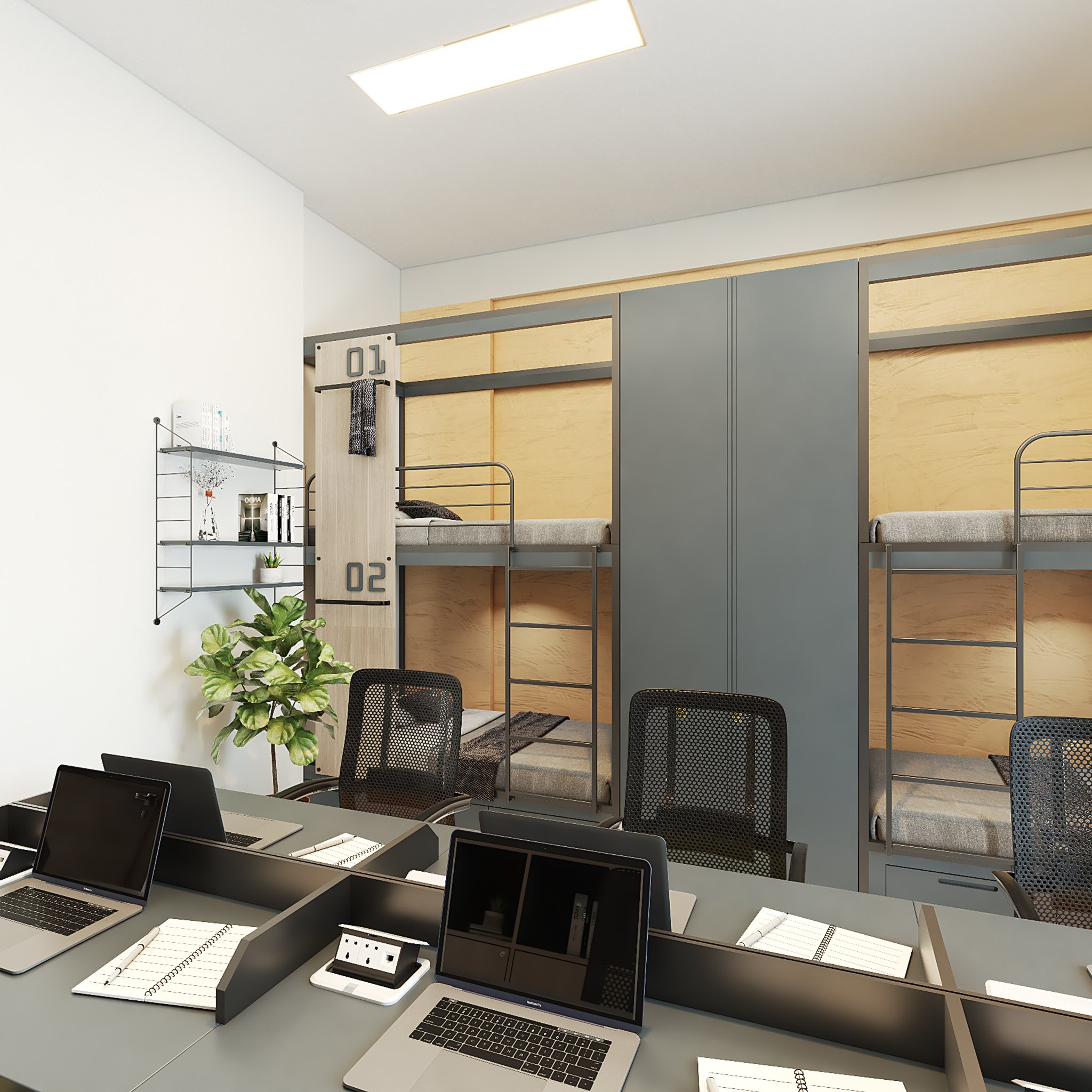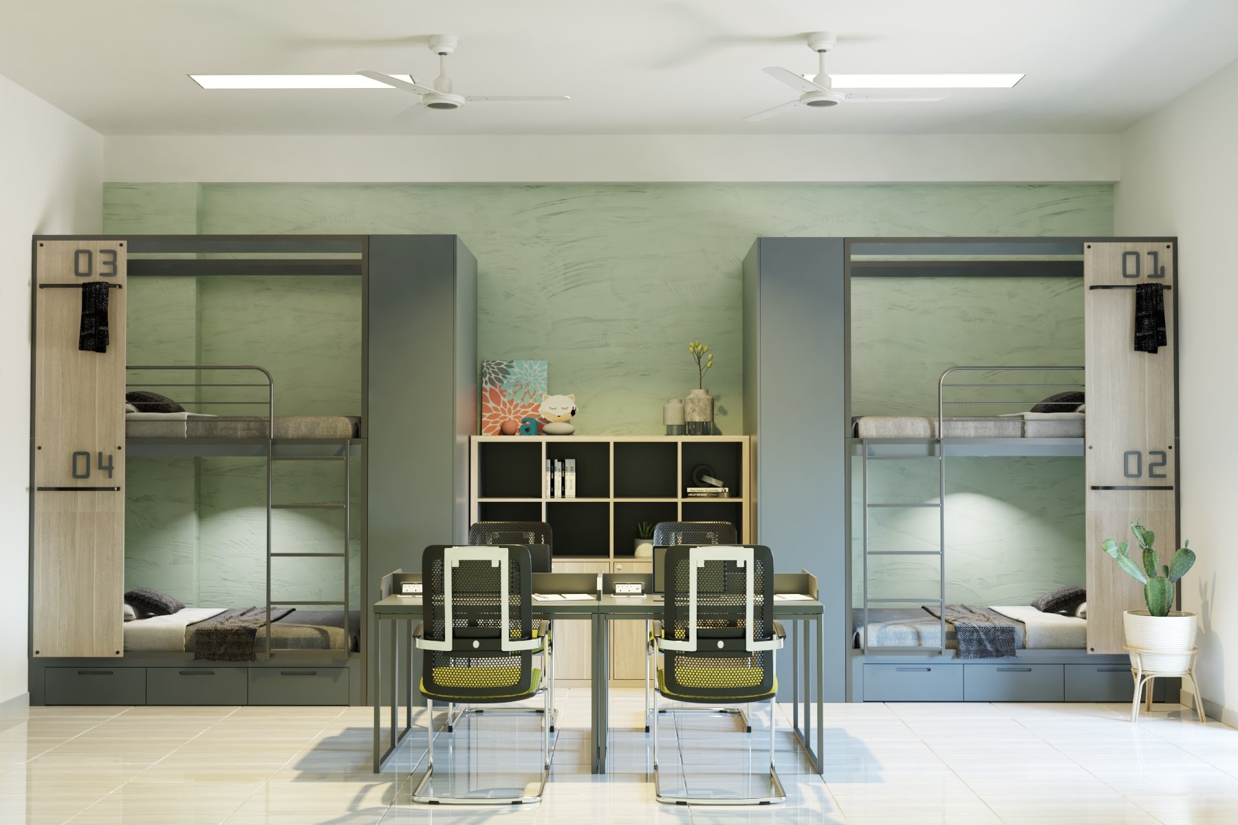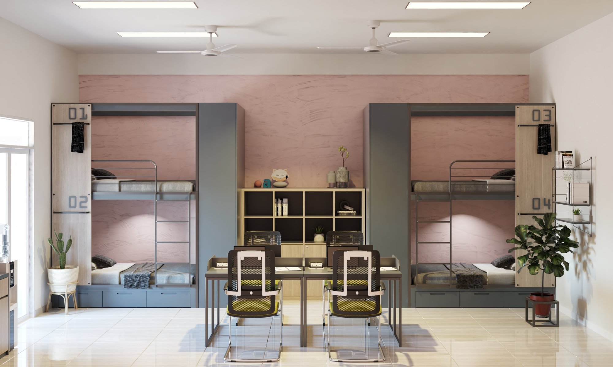Phối cảnh phòng dành cho 4 người tại KTX Thanh Trì