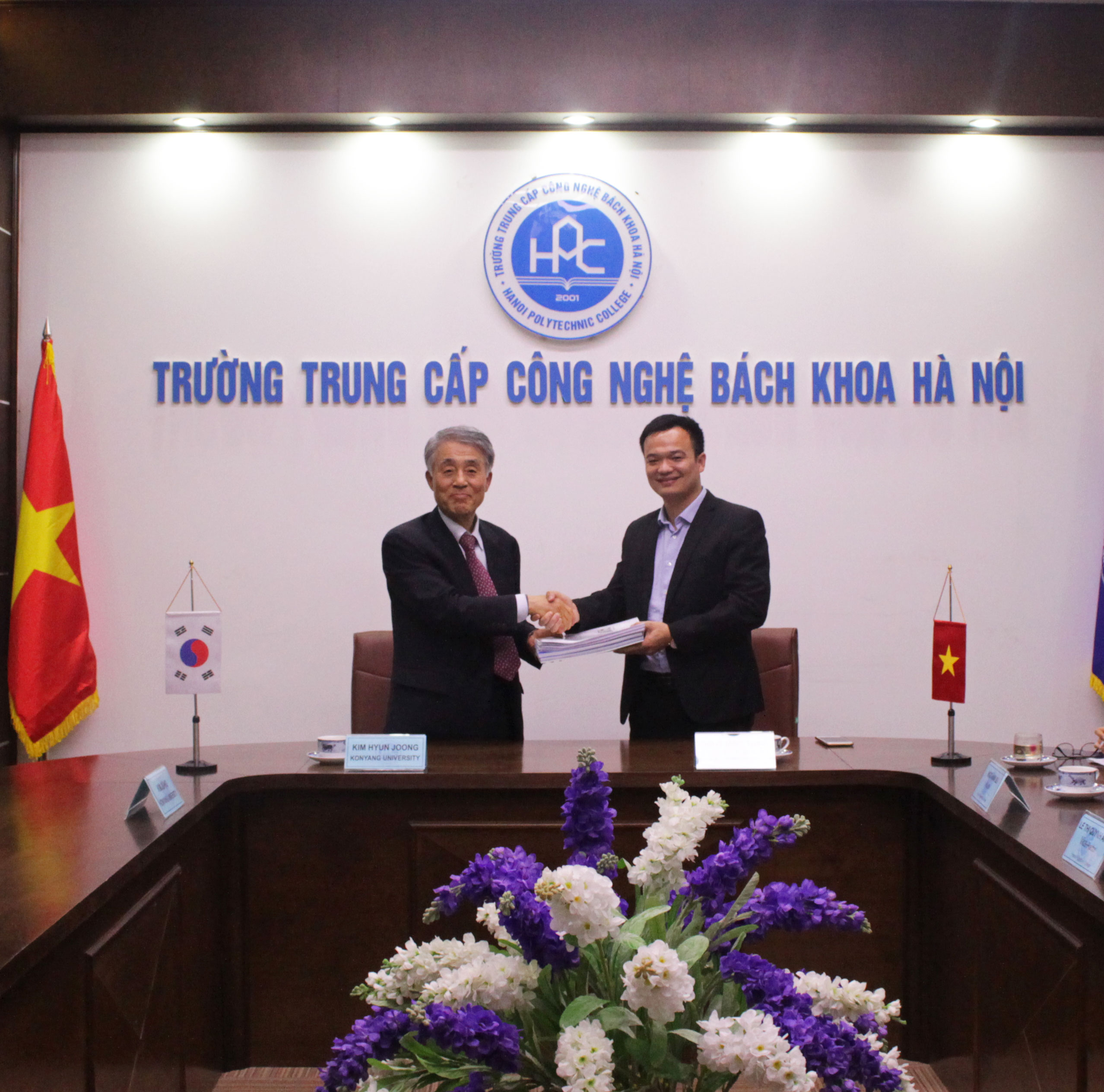 Thầy Bùi Quang Thịnh – Chủ tịch Hội đồng giáo dục – Trường Trung cấp Công nghệ Bách khoa Hà Nội và GS Kim Hyun Joong – Viện trưởng Viện Giáo dục Quốc tế – Đại học Konyang