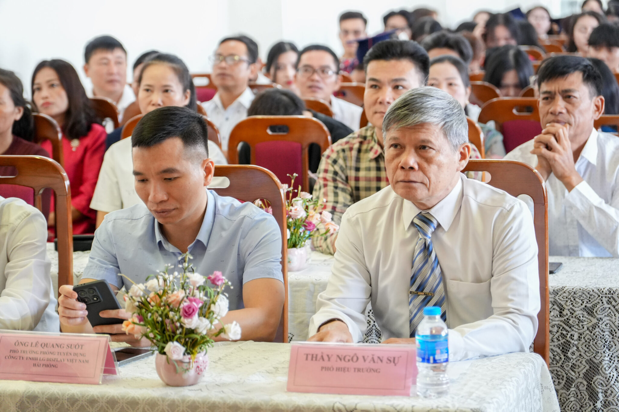 Thầy Ngô Văn Sự – Phó Hiệu trưởng Nhà trường – chăm chú quan sát thời khắc quan trọng và hạnh phúc của các tân cử nhân, kỹ sư thực hành HPC