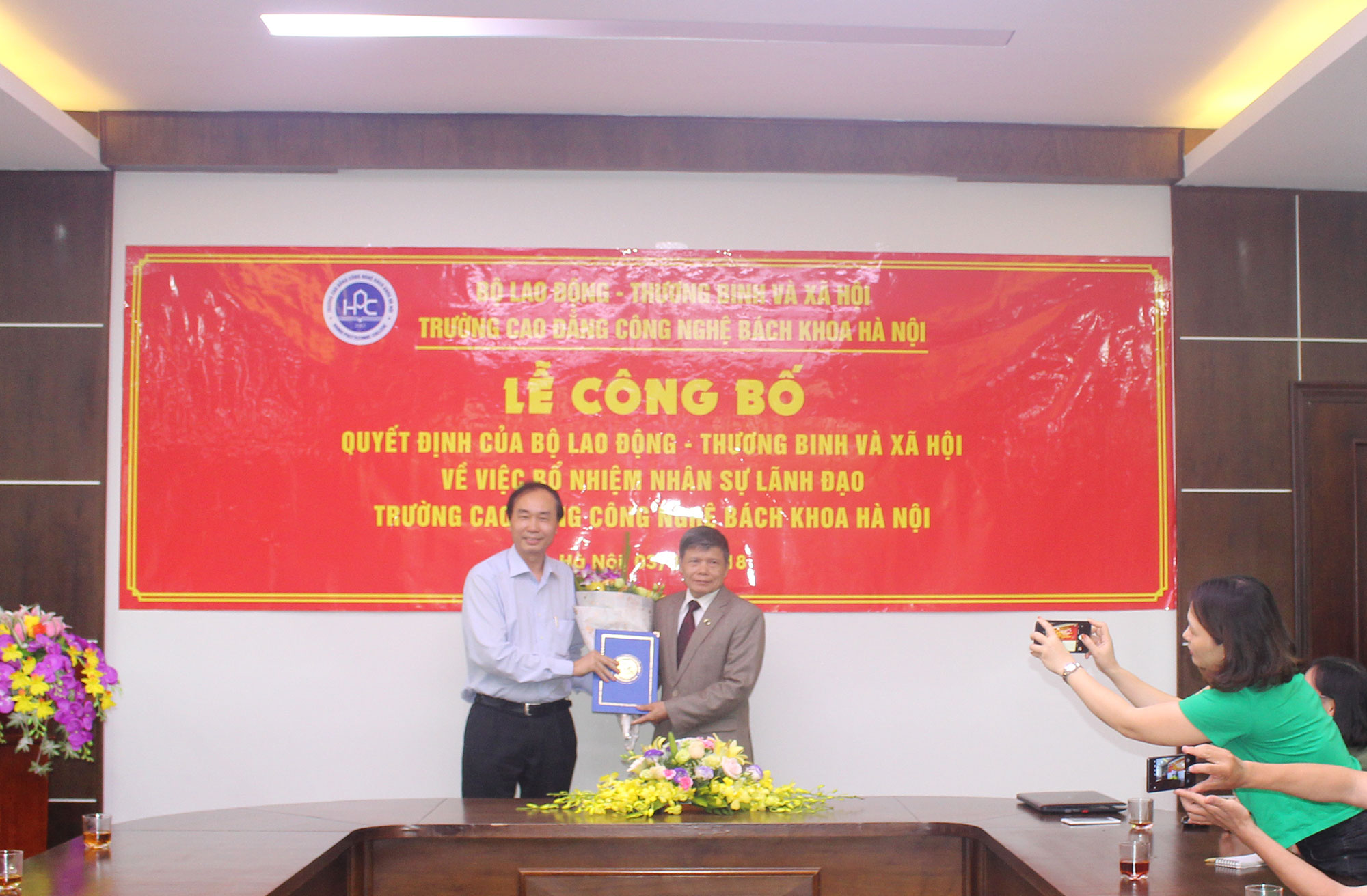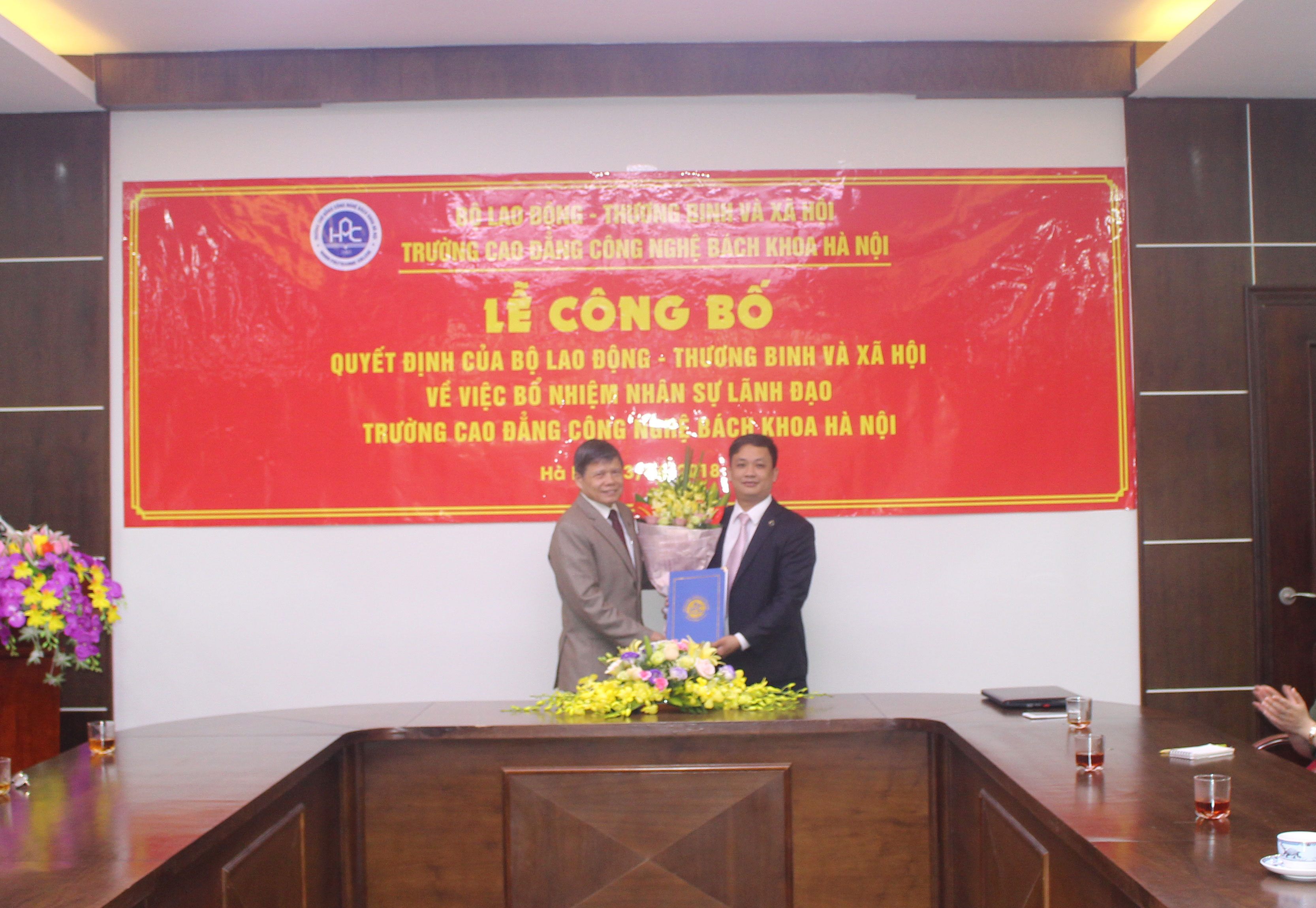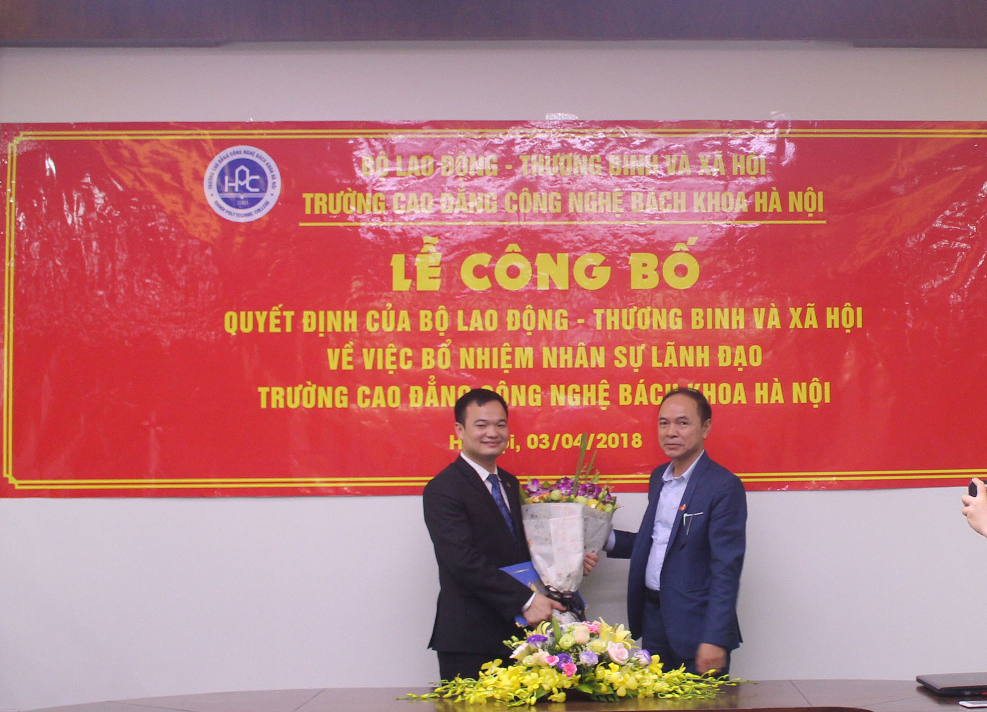 Theo đó, Bộ Lao động Thương binh và Xã hội đã bổ nhiệm: Thầy Bùi Quang Thịnh là Chủ tịch Hội đồng giáo dục Trường Cao đẳng Công nghệ Bách khoa Hà Nội; Thầy Ngô Văn Sự là Hiệu trưởng nhà trường.