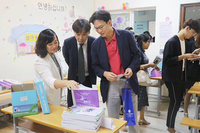 Tham dự chương trình có Thầy Bùi Quang Thịnh – Chủ tịch Hội đồng giáo dục nhà trường; Thầy Ngô Văn Sự – Hiệu trưởng nhà trường; Ông Woo Hyung Min – Trưởng Đại diện quỹ giao lưu Quốc tế Hàn Quốc tại Việt Nam; Ông Suk Jin Yong – Giám đốc Trung tâm Văn hóa Hàn Quốc tại Việt Nam; thầy cô đại diện các phòng ban và thầy trò Khoa Ngôn ngữ và Văn hóa Hàn Quốc – HPC.