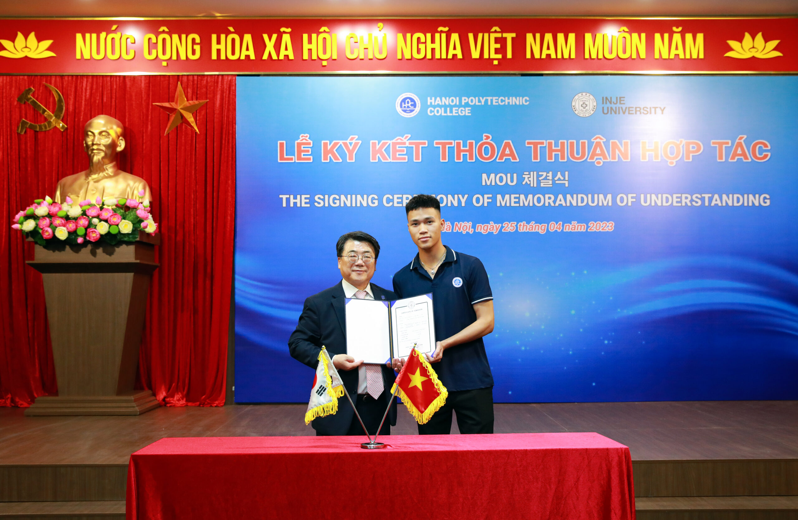 Sáng ngày 25/4, trường Cao đẳng Công nghệ Bách Khoa Hà Nội đã long trọng tổ chức lễ ký kết ghi nhớ thỏa thuận hợp tác (MOU) và trao học bổng cho sinh viên cùng trường Đại học Inje – Hàn Quốc.
