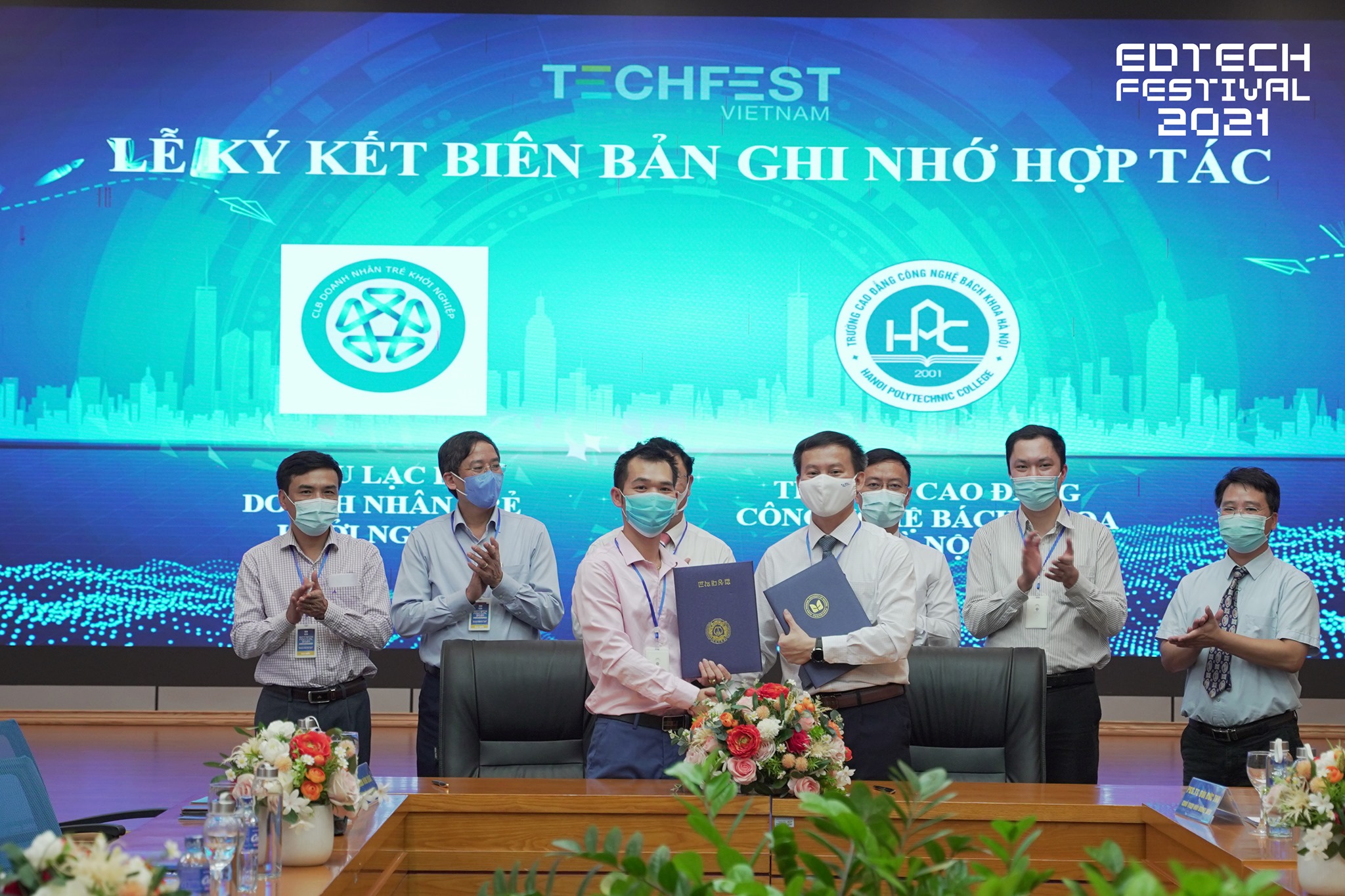 ? Ngày 14/7/2021, thầy Đỗ Nguyên Hưng, Phó Hiệu trưởng Trường Cao đẳng Công nghệ Bách khoa Hà Nội (HPC) ký biên bản ghi nhớ hợp tác với Trung tâm hỗ trợ khởi nghiệp sáng tạo quốc gia (NSSC) thuộc Cục phát triển thị trường và doanh nghiệp KH&CN (NATEC) và Câu lạc bộ Doanh nhân trẻ khởi nghiệp – YBC startup. Theo đó, sinh viên có được nguồn tài trợ nhằm ứng dụng những kiến thức đã học vào thực tế để biến ước mơ, hoài bão thành hiện thực.