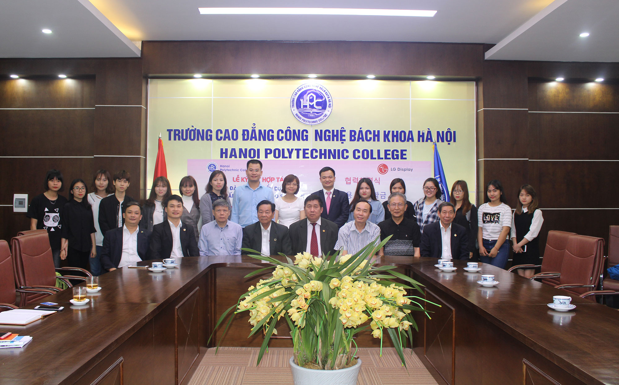 Đại diện Ban Lãnh đạo Trường Cao đẳng Công nghệ Bách khoa Hà Nội dự Lễ ký kết có Thầy Bùi Quang Thịnh – Chủ tịch Hội đồng giáo dục nhà trường; Thầy Ngô Văn Sự – Hiệu trưởng nhà trường; Các thầy cô trong Ban cố vấn, Ban Giám hiệu và phòng ban chuyên môn…