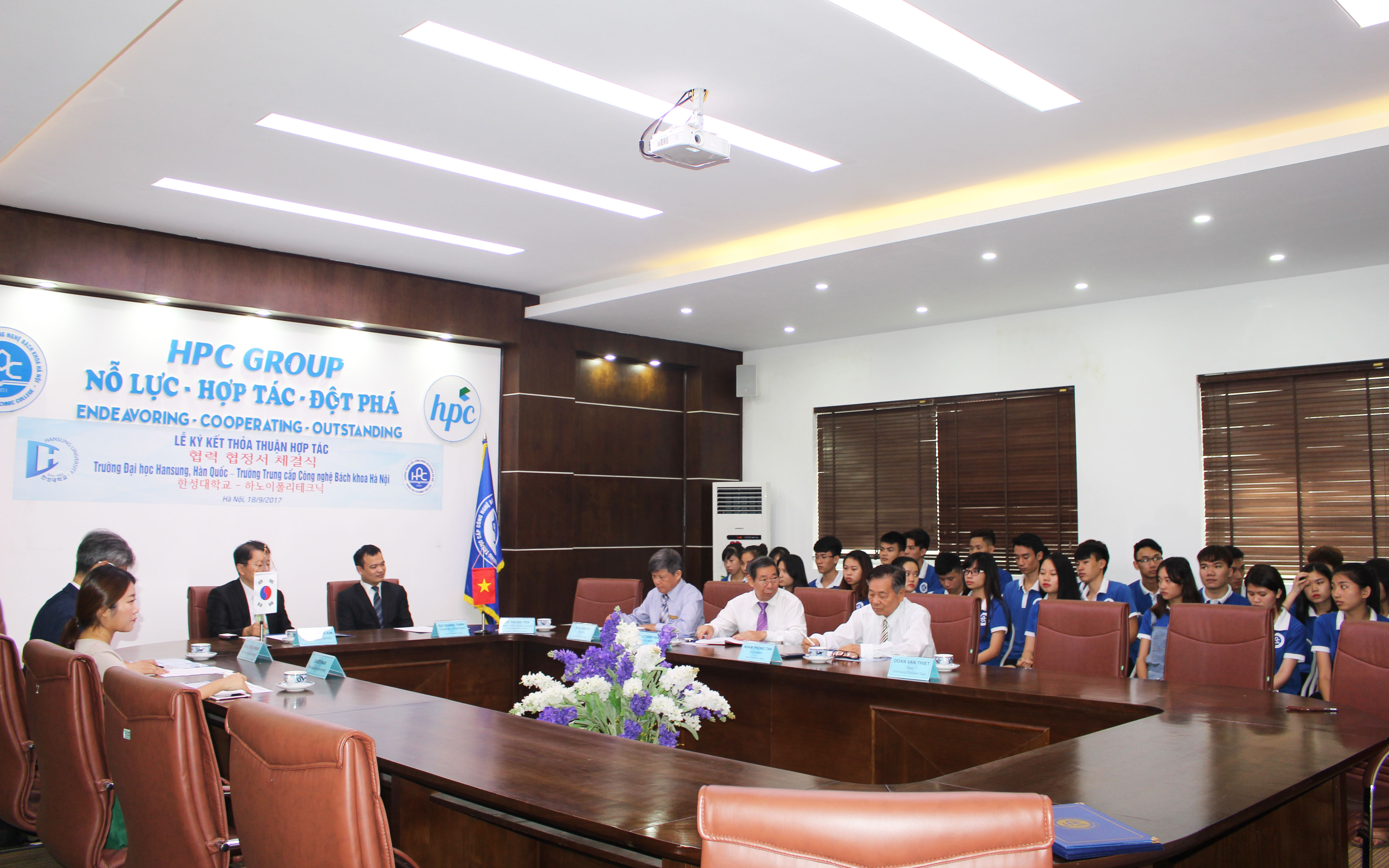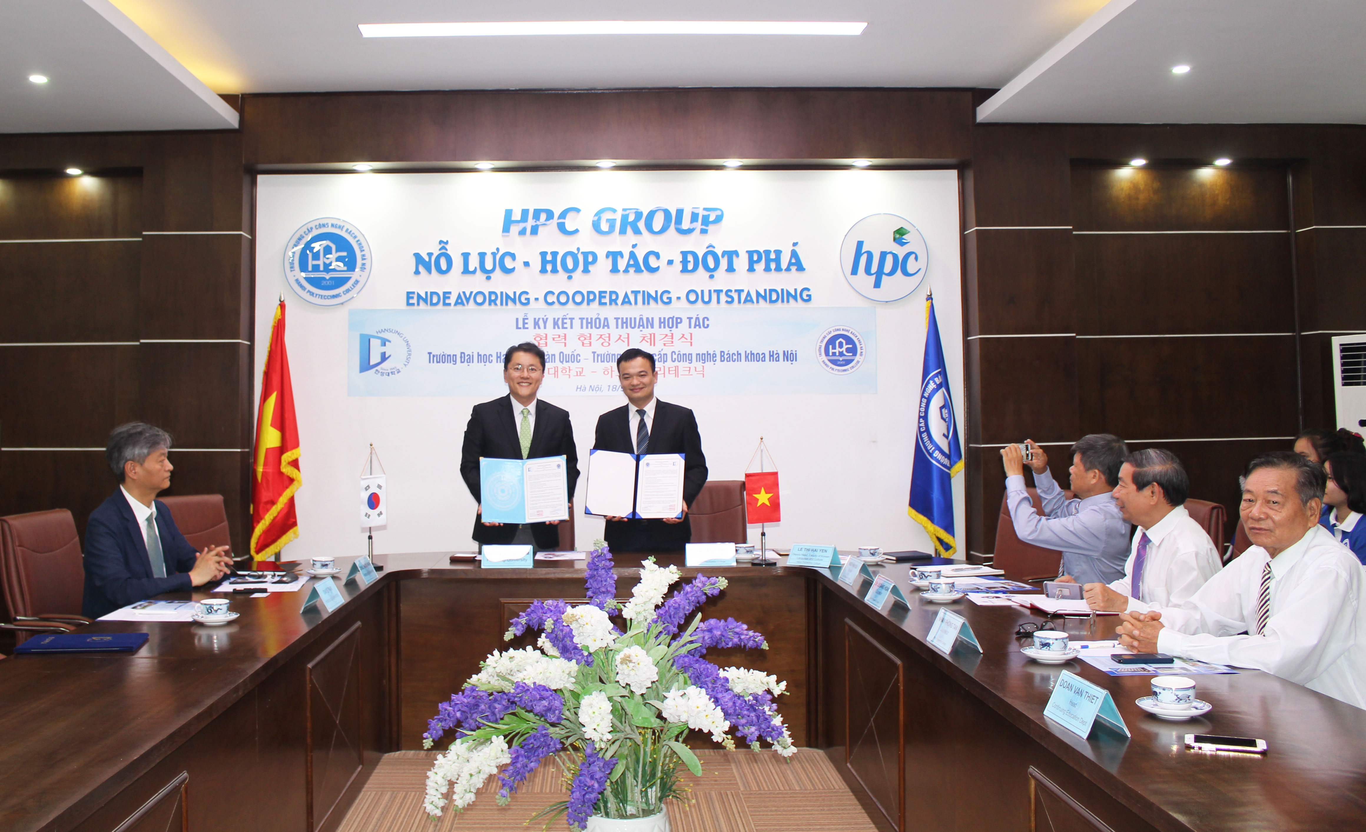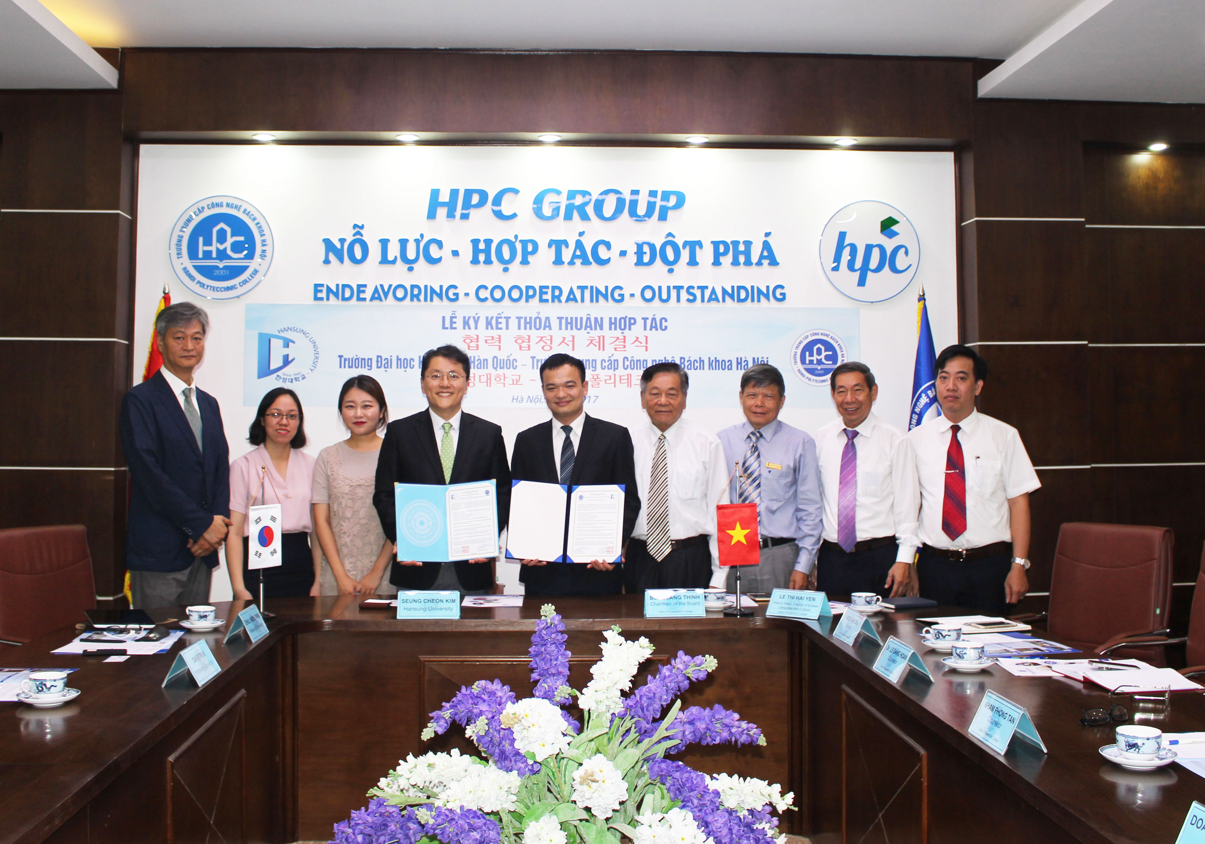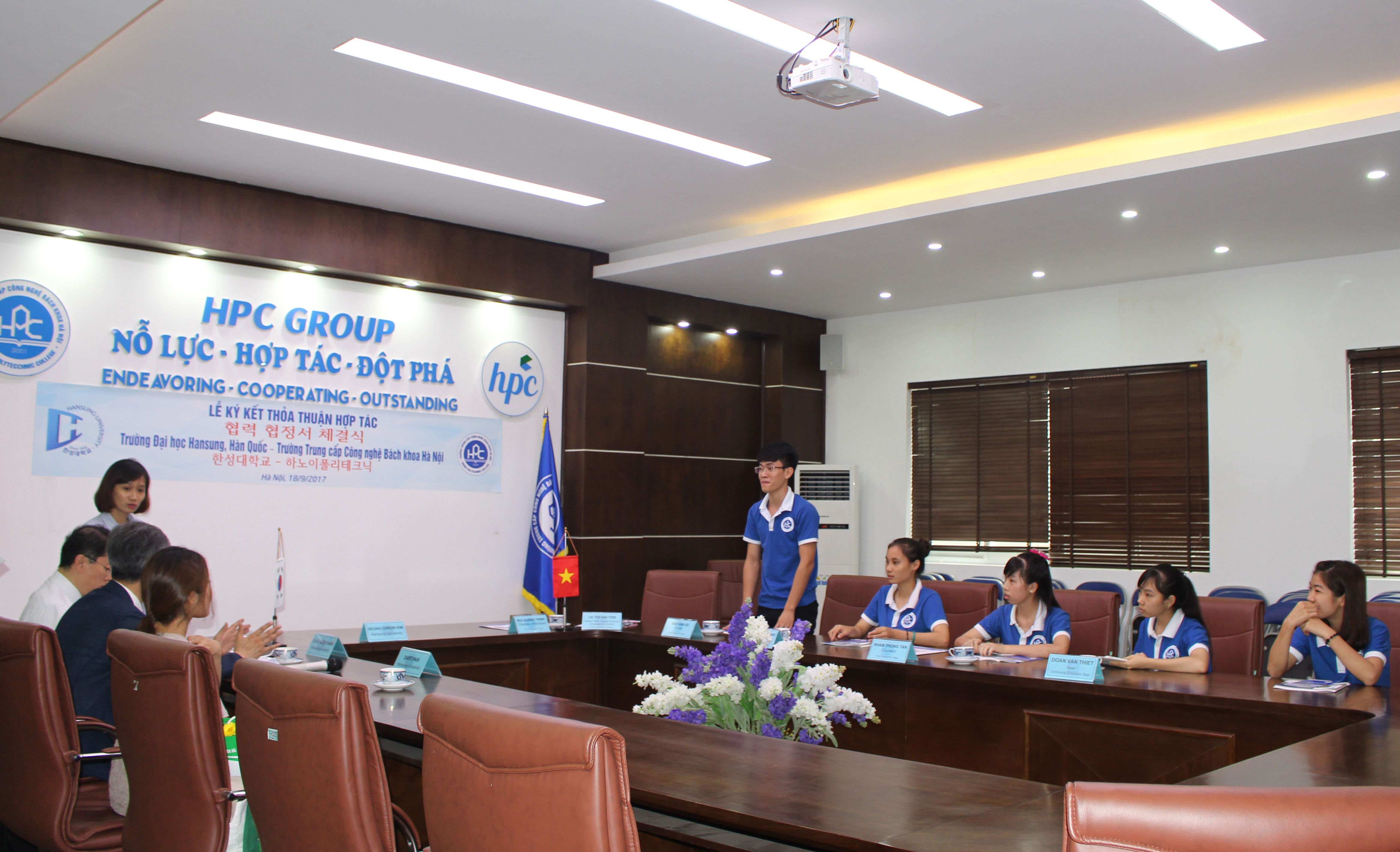 Thầy Bùi Quang Thịnh, Chủ tịch Hội đồng Giáo dục nhà trường khẳng định: Chúng tôi rất coi trọng mối quan hệ mà hai trường đã xây dựng. Tôi tin rằng hai trường sẽ đẩy mạnh hợp tác giáo dục đào tạo. Trường HPC sẽ gửi đến Đại học Hansung những sinh viên tốt. Hai đơn vị cùng đẩy mạnh hợp tác giao lưu, trao đổi giáo viên, chia sẻ kinh nghiệm giảng dạy. Chú trọng nâng cao chất lượng sinh viên, chất lượng đào tạo của trường là việc chúng tôi rất quan tâm, để giúp các em có cơ hội tốt khi du học Hàn Quốc.