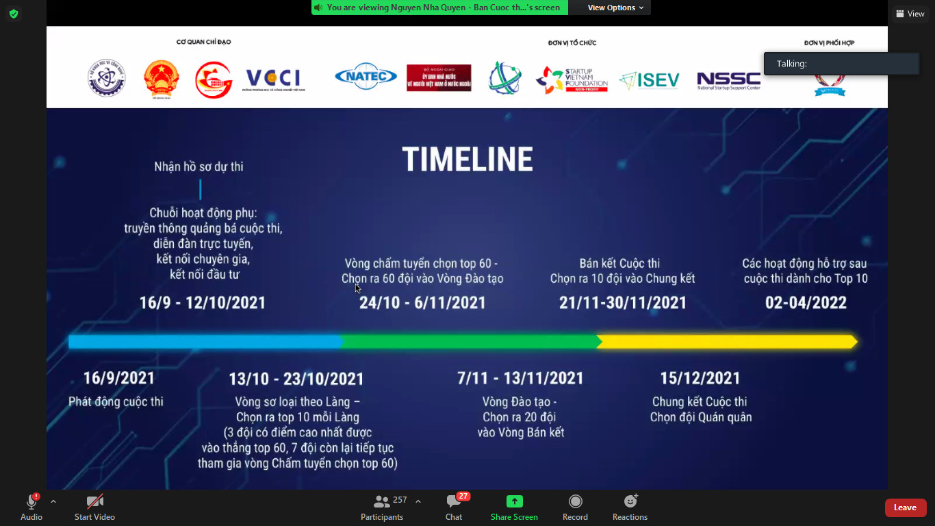 Cuộc thi được khởi động bằng chuỗi hội thảo công nghệ và ứng dụng theo ngành, với những chuyên gia người Việt trong nước và quốc tế. Các đội thi tiềm năng, nghiêm túc, sẽ nhận được các gói hỗ trợ cụ thể ngay từ vòng đầu tiên từ các đơn vị đại diện các Làng công nghệ, các tổ chức hỗ trợ, chuyên gia, các cơ quan truyền thông, đầu tư trong nước và quốc tế. Chương trình năm nay kỳ vọng là một bệ đỡ đúng nghĩa cho doanh nghiệp khởi nghiệp, và doanh nghiệp đổi mới sáng tạo phát triển trong nước và vươn tầm thế giới.